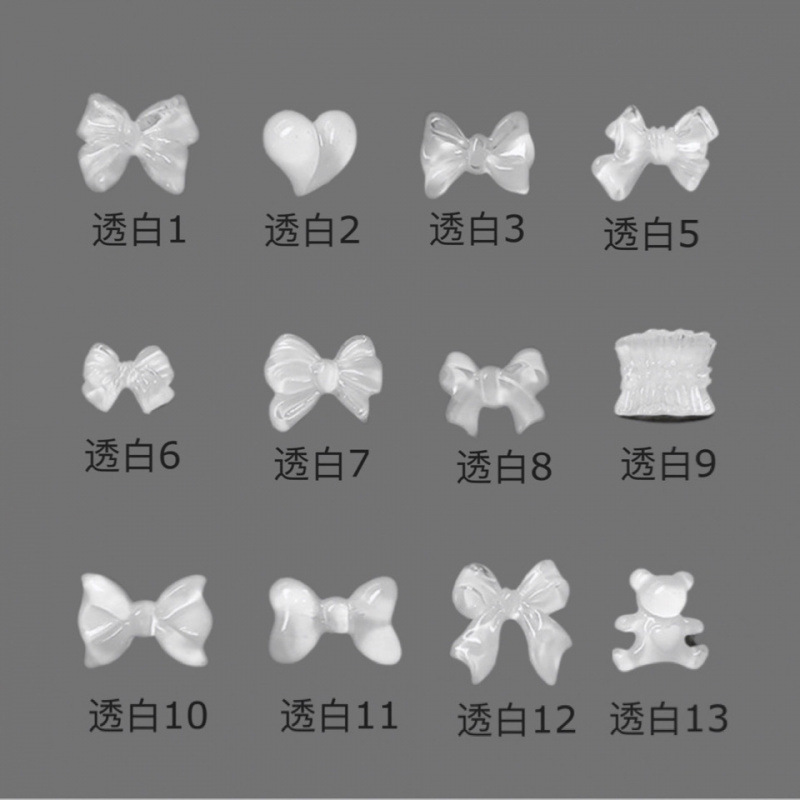 다양한 혼합 젤리 투명 매니큐어 스티커, 나비곰, 하트 스커트, 투명 3차원 네일 스티커 시리즈 혼합 팩스토어 가기