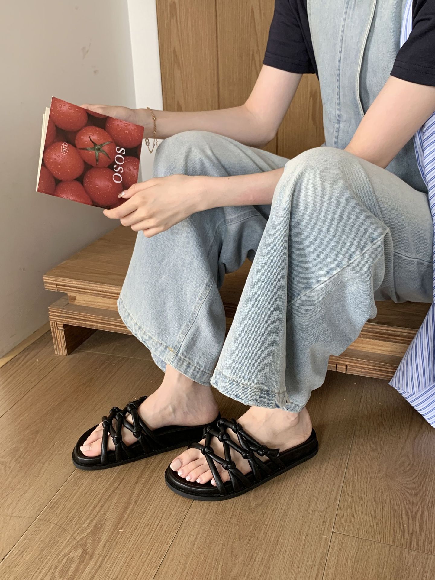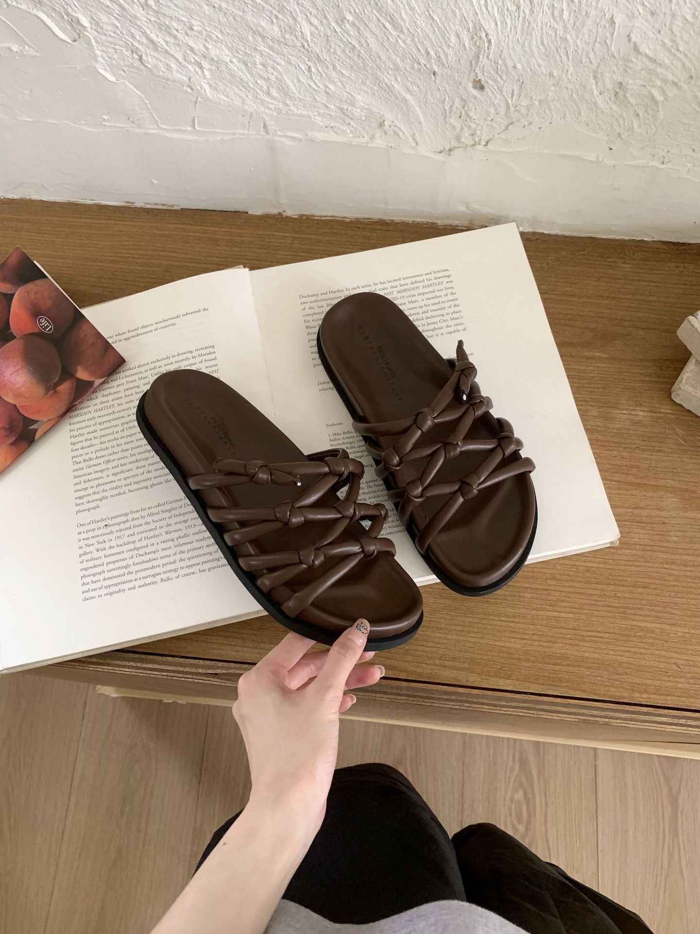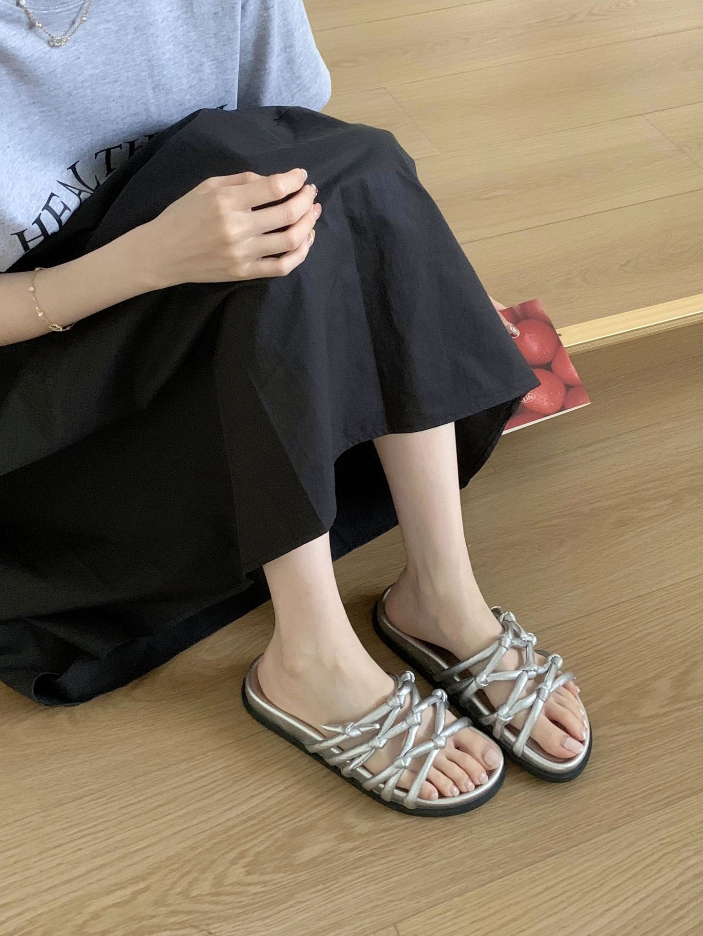 2025년 여름 새로운 스타일의 프렌치 라운드 토 아름다운 여성 외투 슬리퍼, 슬리퍼, 두꺼운 밑창 샌들
