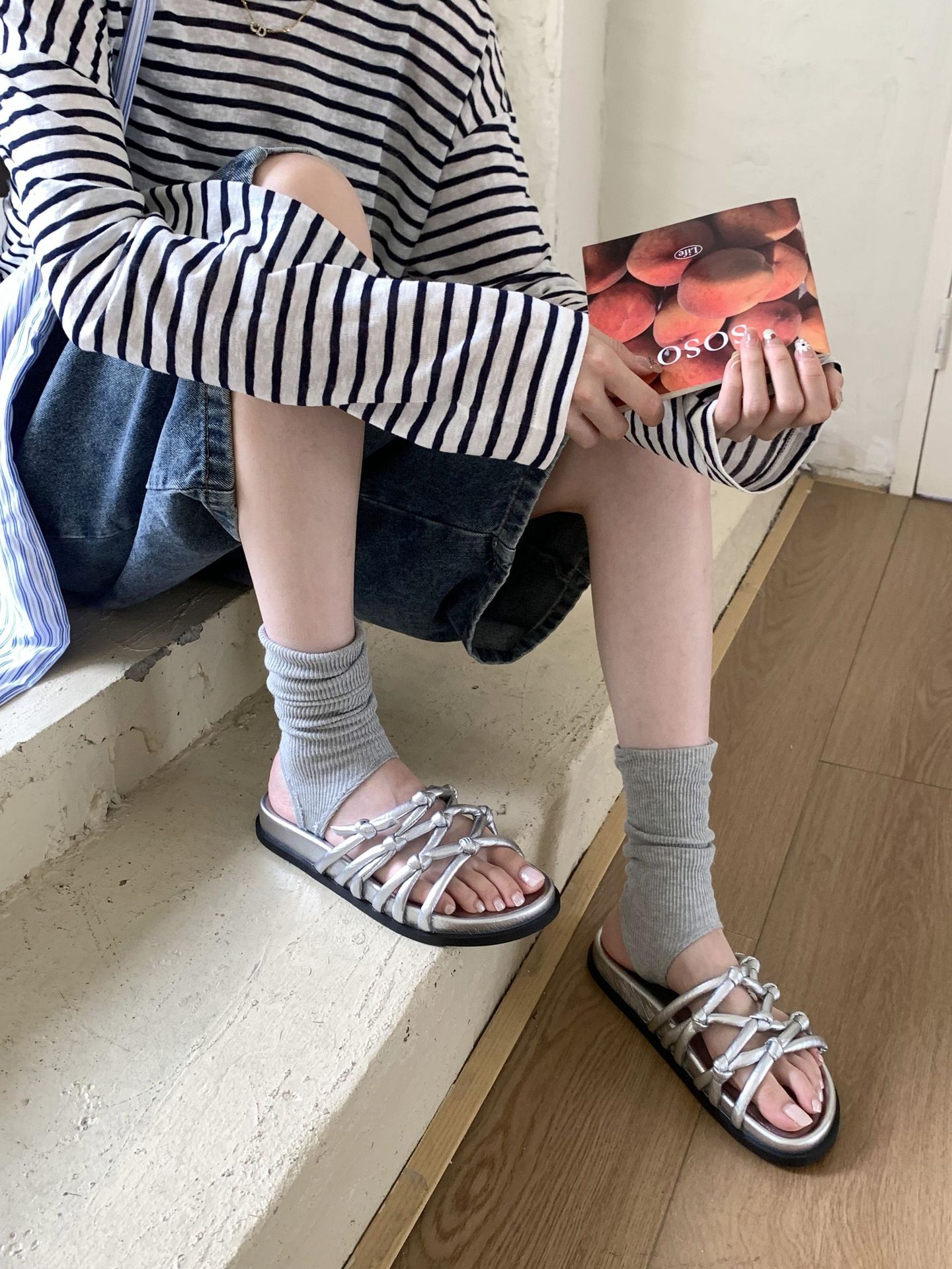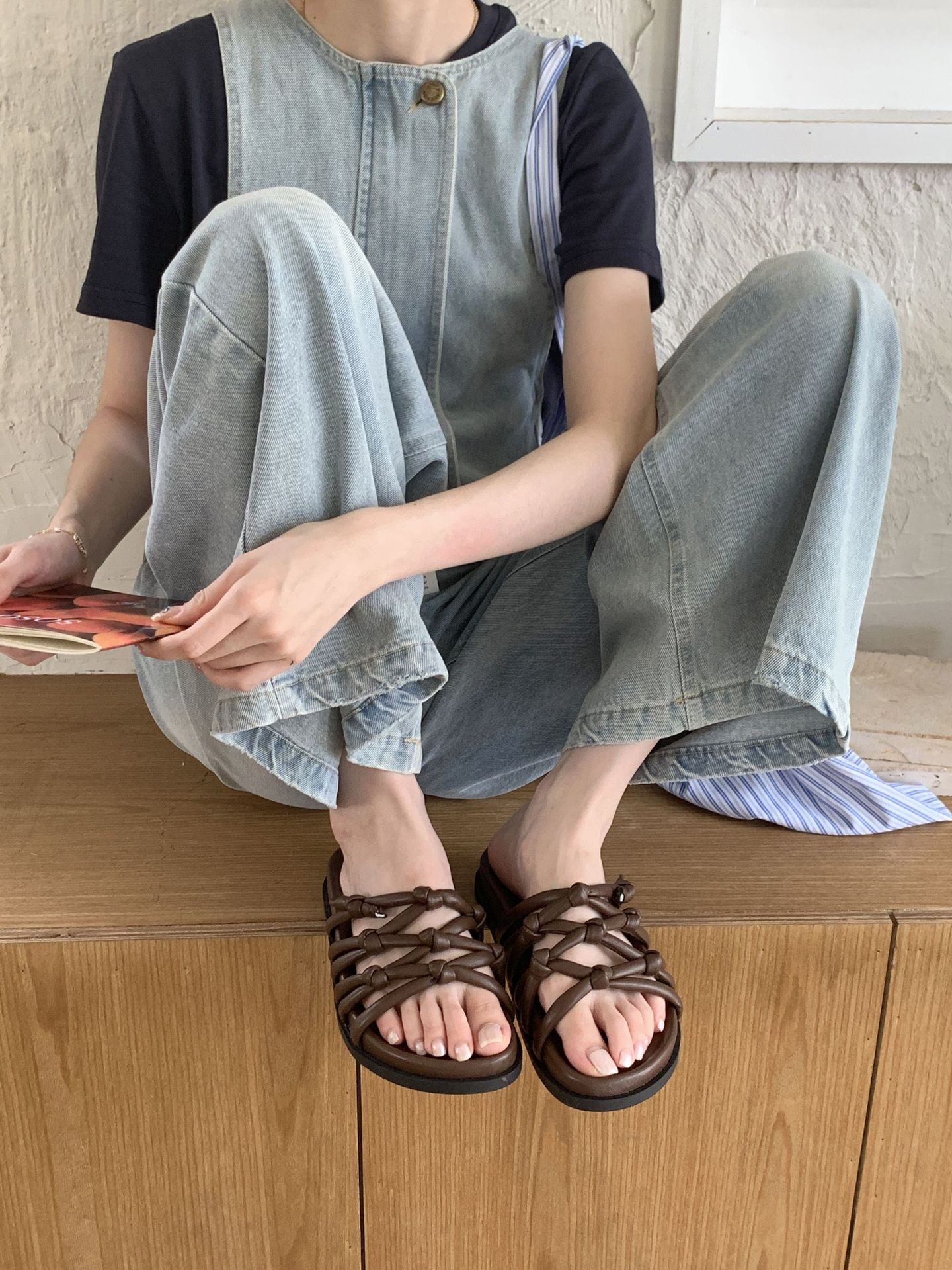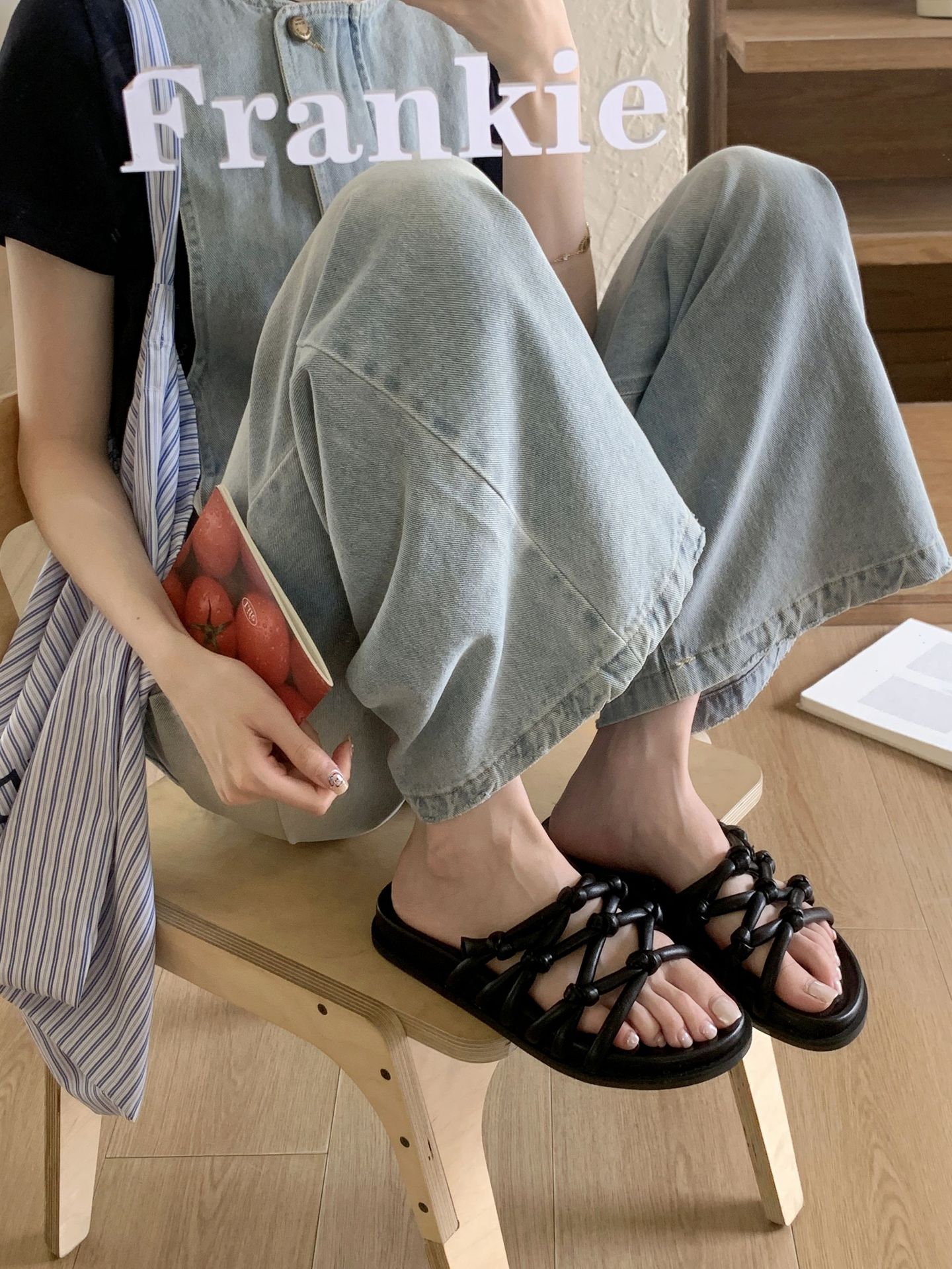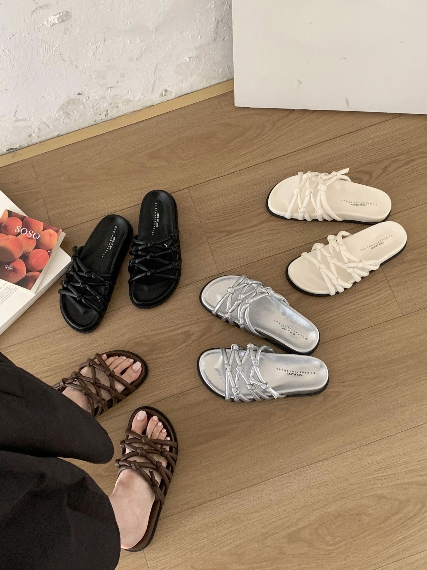 2025년 여름 새로운 스타일의 프렌치 라운드 토 아름다운 여성 외투 슬리퍼, 슬리퍼, 두꺼운 밑창 샌들