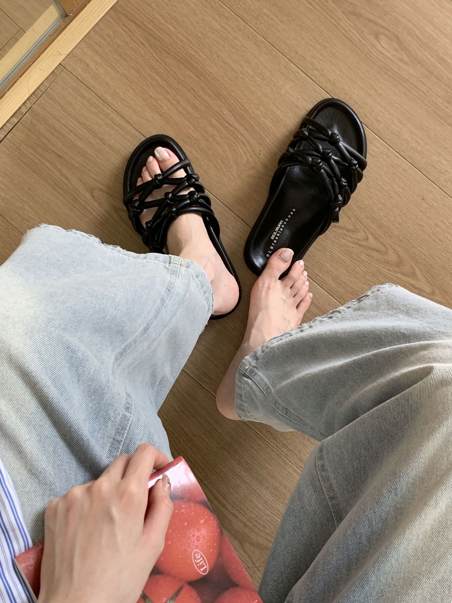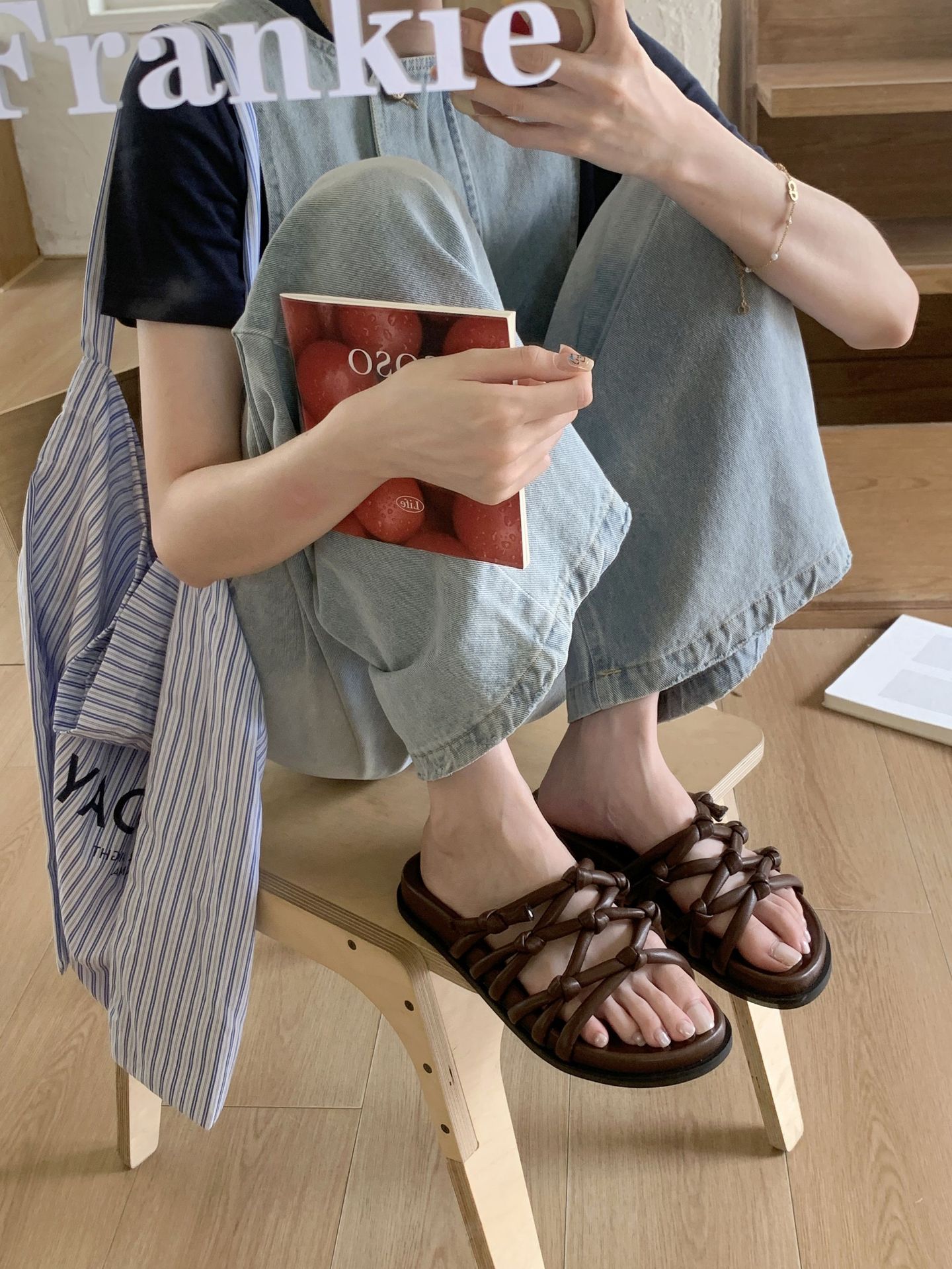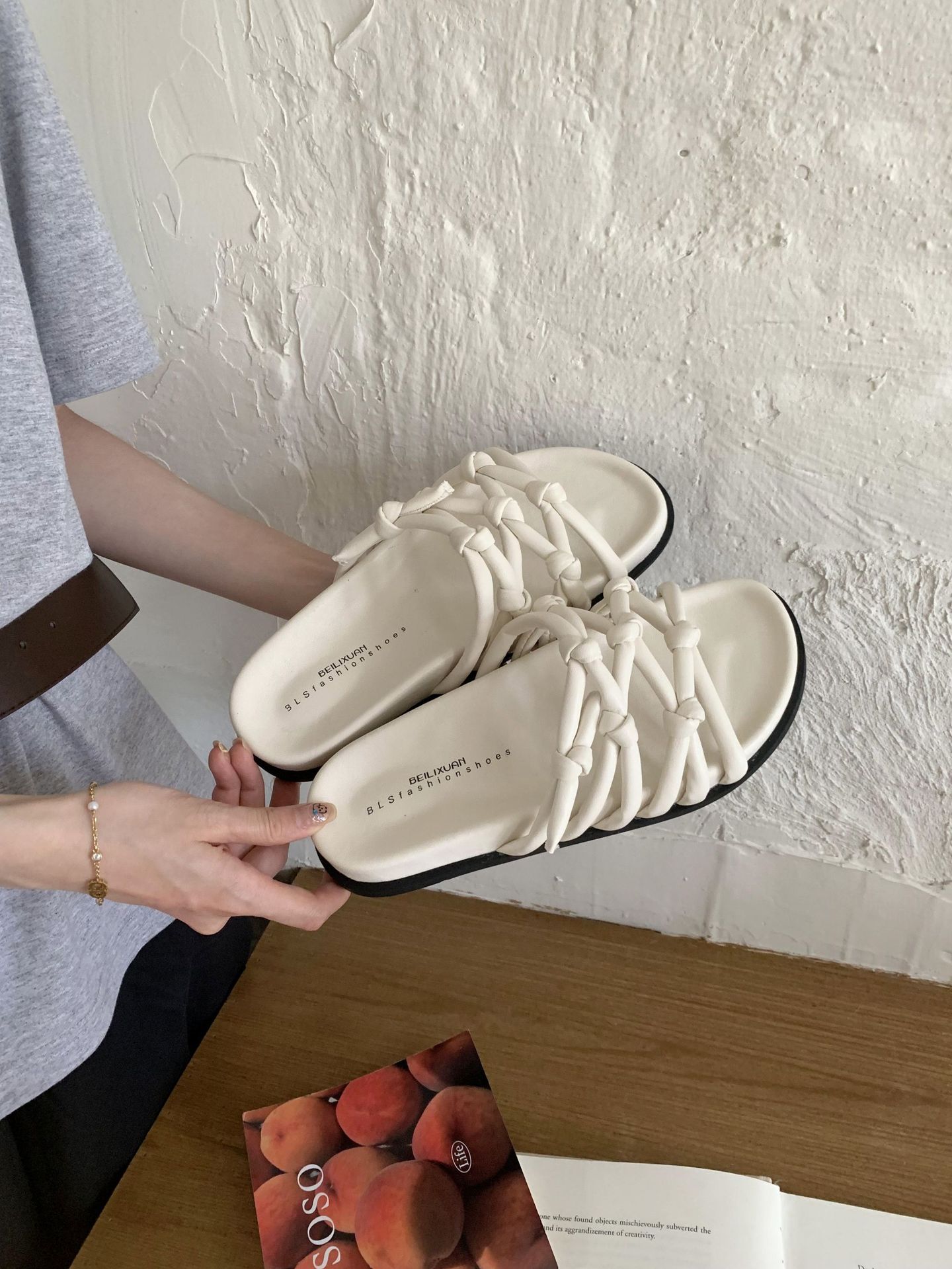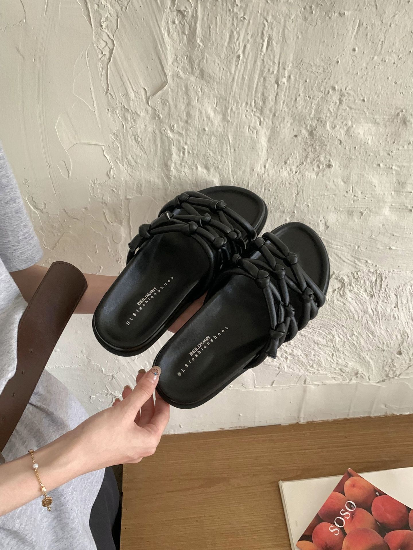 2025년 여름 새로운 스타일의 프렌치 라운드 토 아름다운 여성 외투 슬리퍼, 슬리퍼, 두꺼운 밑창 샌들스토어 가기
