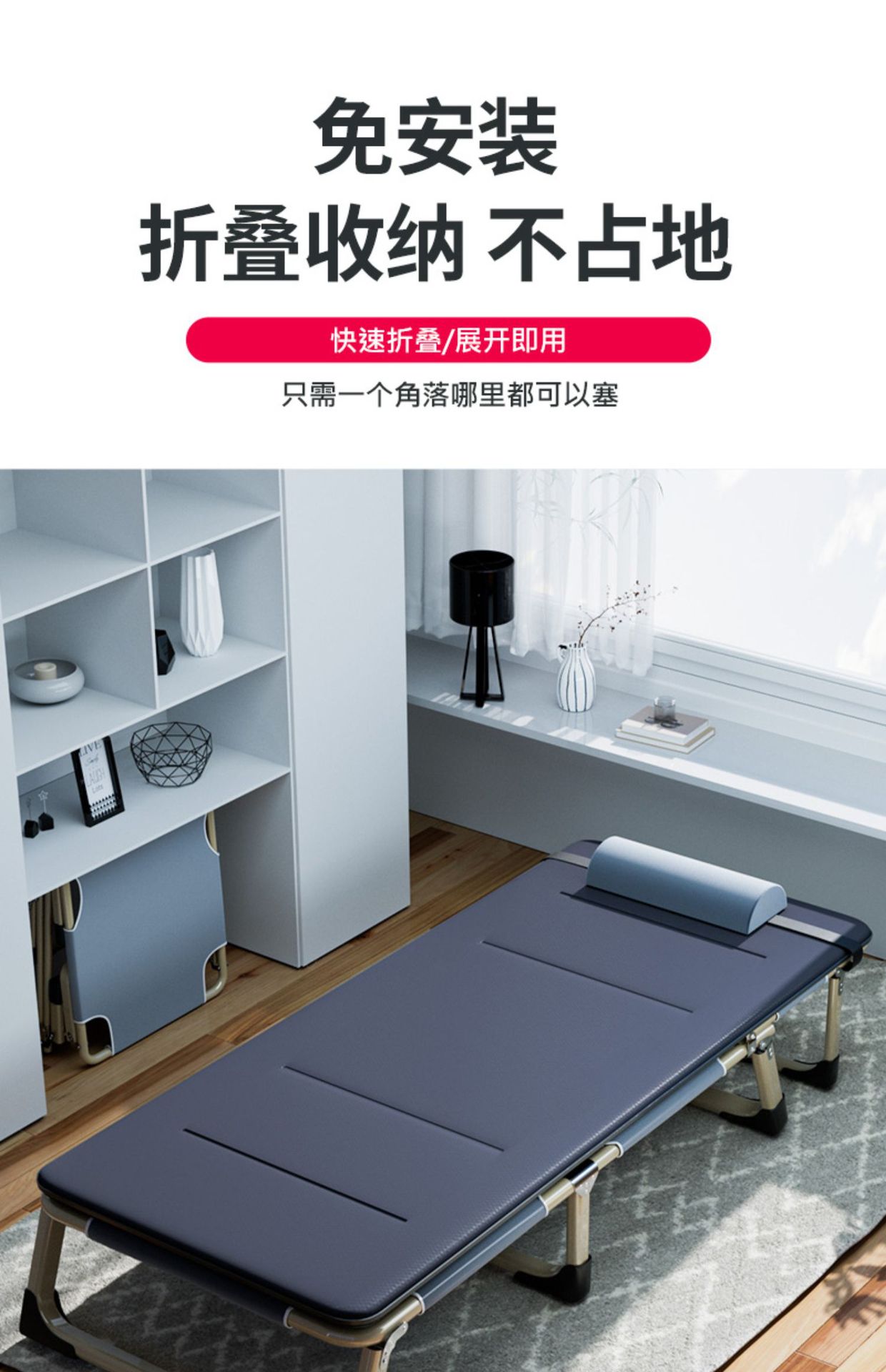 접이식 침대 싱글 침대 가정용 간단한 낮잠 침대 사무실 성인 낮잠 휴대용 안락 의자 다기능 캠프 g^스토어 가기