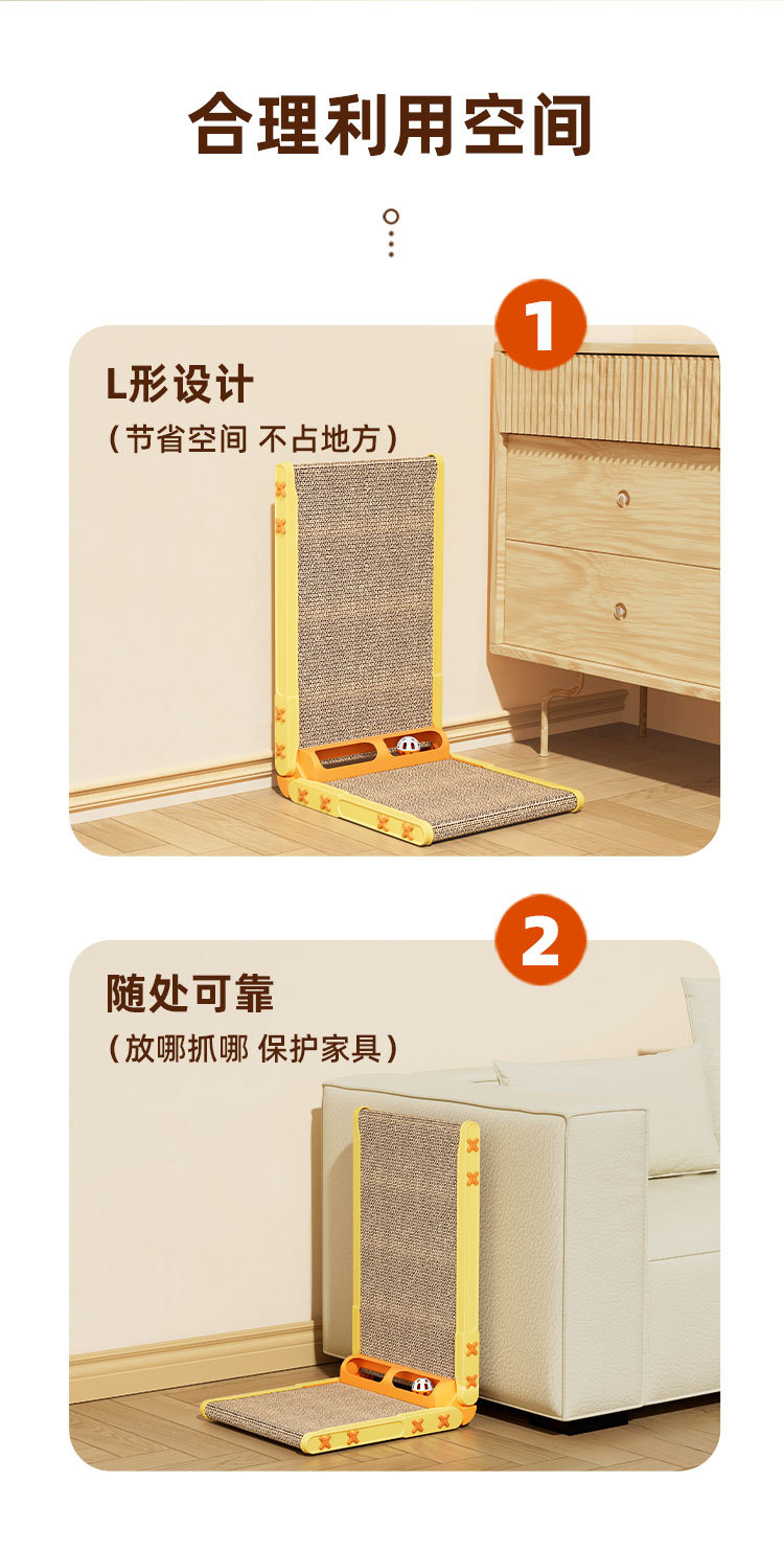 벽에 부착된 수직 L자형 고양이 스크래치 보드, 내마모성, 넓어지고 두꺼워지고 부스러기가 없는 발톱 연삭 도구, 골판지 고양이 스크래치 보드 장난감스토어 가기