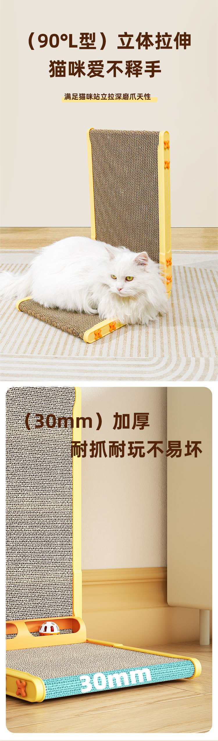 벽에 부착된 수직 L자형 고양이 스크래치 보드, 내마모성, 넓어지고 두꺼워지고 부스러기가 없는 발톱 연삭 도구, 골판지 고양이 스크래치 보드 장난감