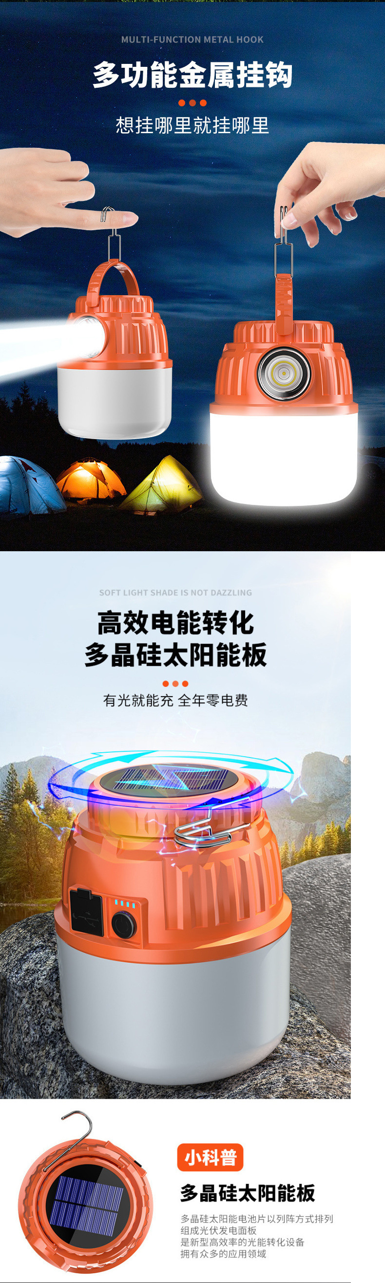 태양광 충전식 조명, 야외 캠핑 조명, 매우 긴 배터리 수명, 충전식 모바일 조명, 충전식 홈 나이트 마켓 조명스토어 가기
