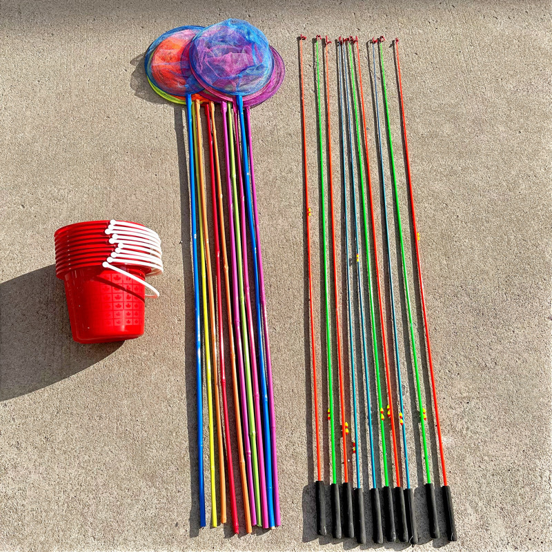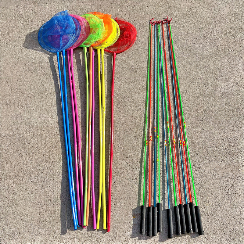 새우 낚싯대 10세트, 가재 낚시대, 크랩 낚시대, 쌀만두, 월병, 어린이 낚싯대, 낚시 그물, 플라스틱 양동이