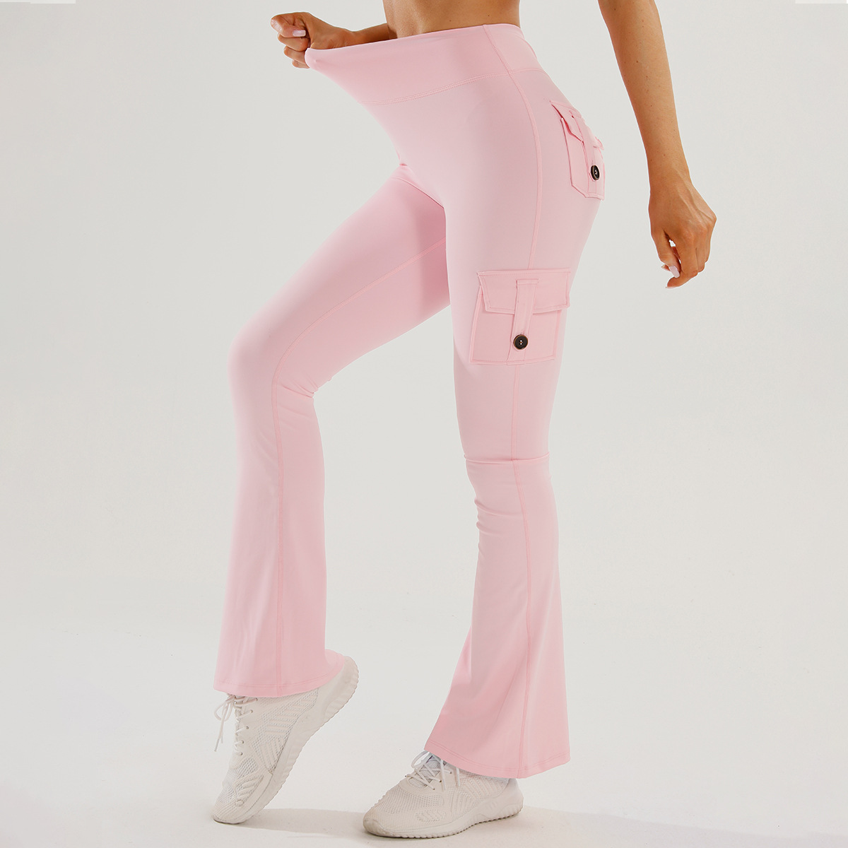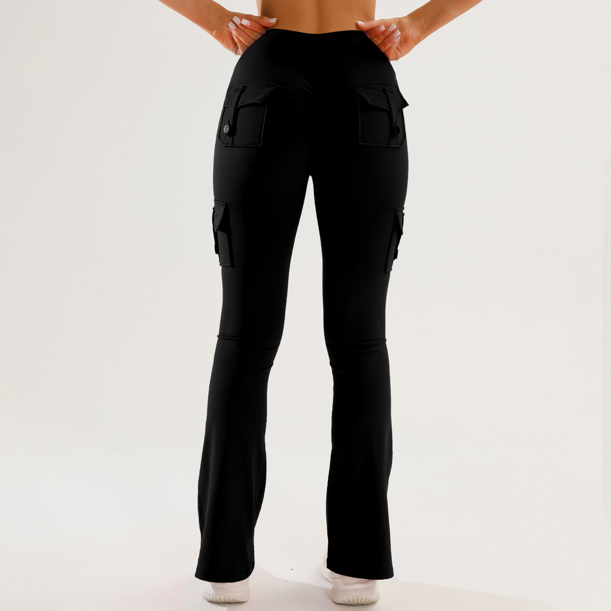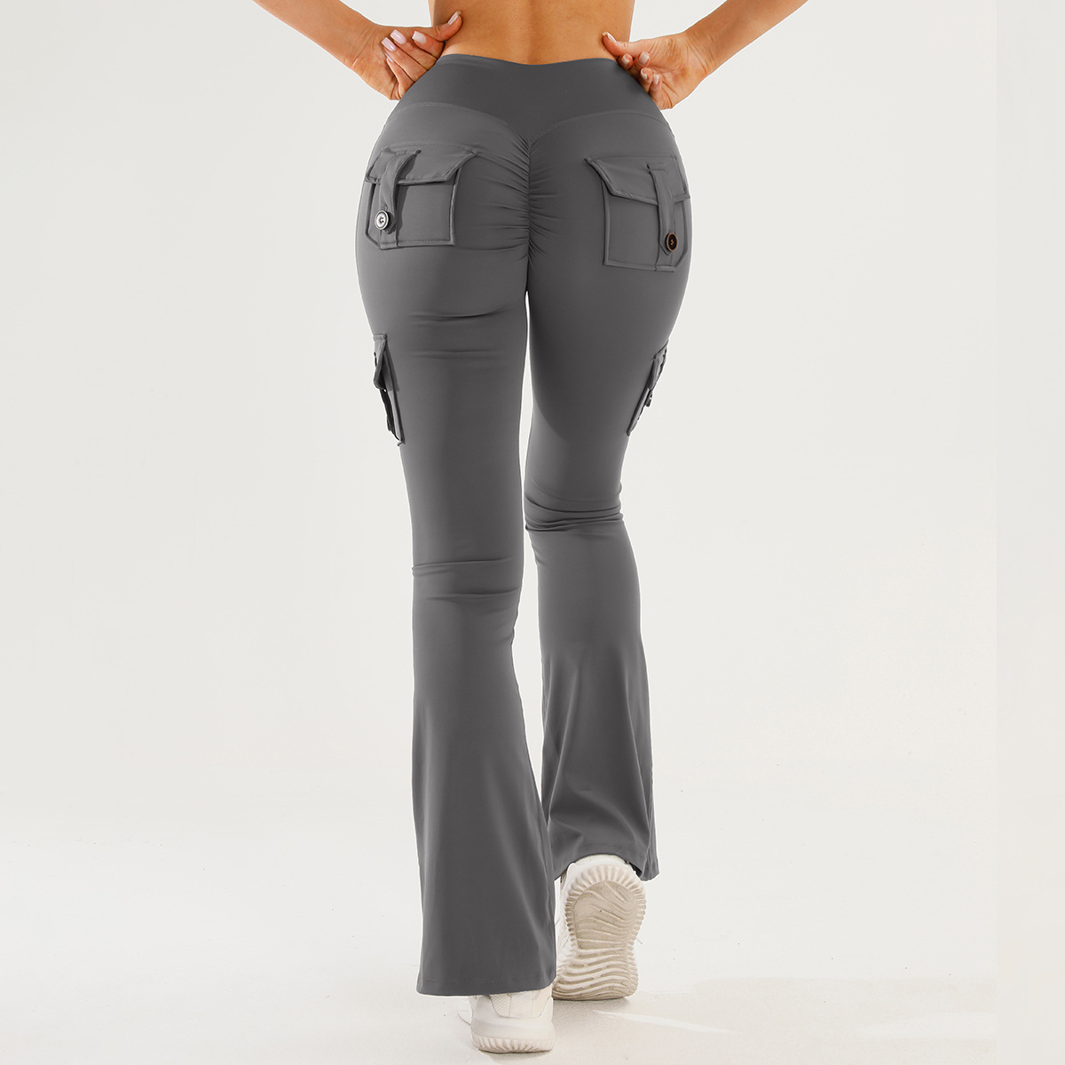 국경을 넘나드는 유럽과 미국의 하이웨이스트 포켓 요가팬츠, 작업복, 나팔바지, 스포츠 여성 슬림핏 엉덩이 리프팅 피치힙 피트니스 팬츠