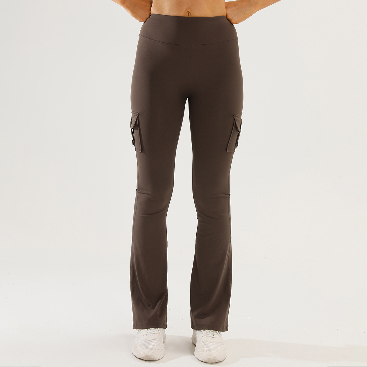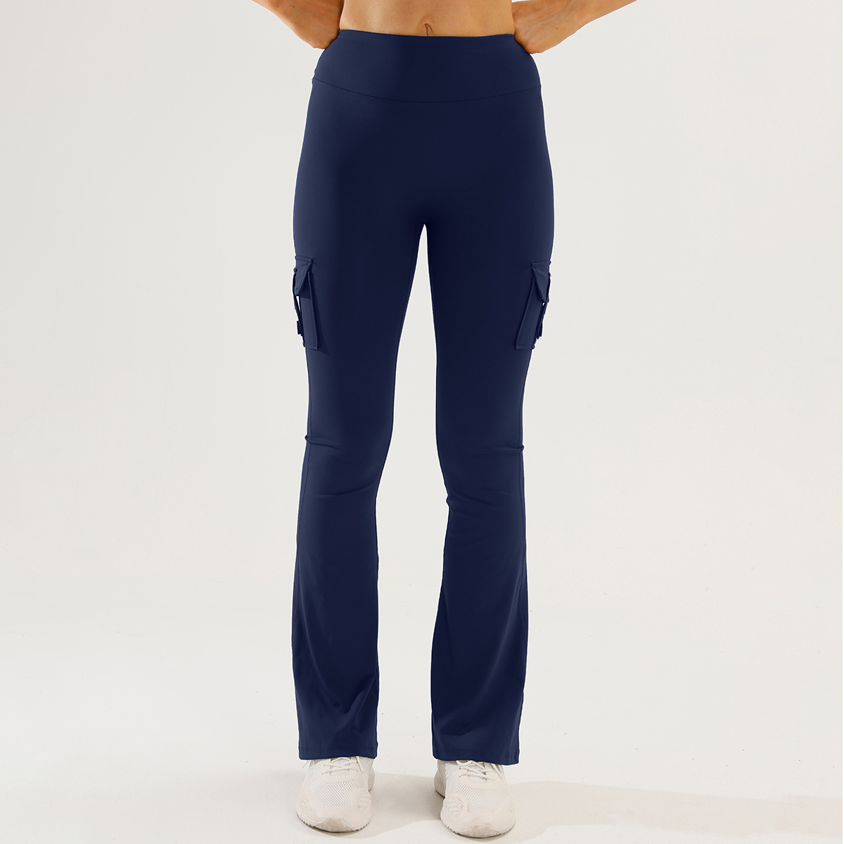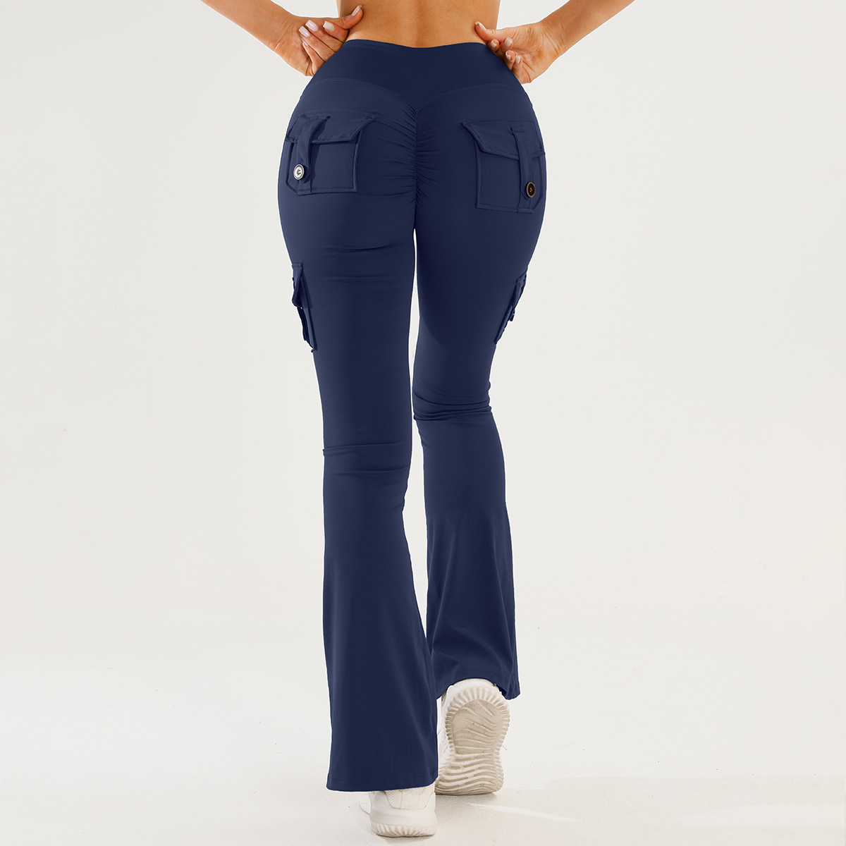 국경을 넘나드는 유럽과 미국의 하이웨이스트 포켓 요가팬츠, 작업복, 나팔바지, 스포츠 여성 슬림핏 엉덩이 리프팅 피치힙 피트니스 팬츠