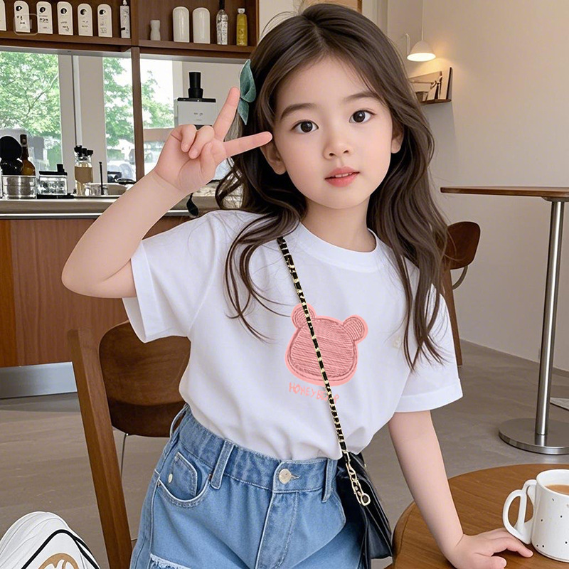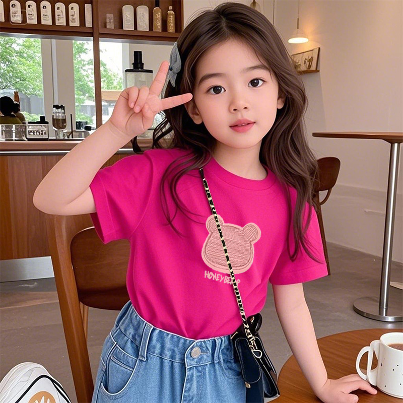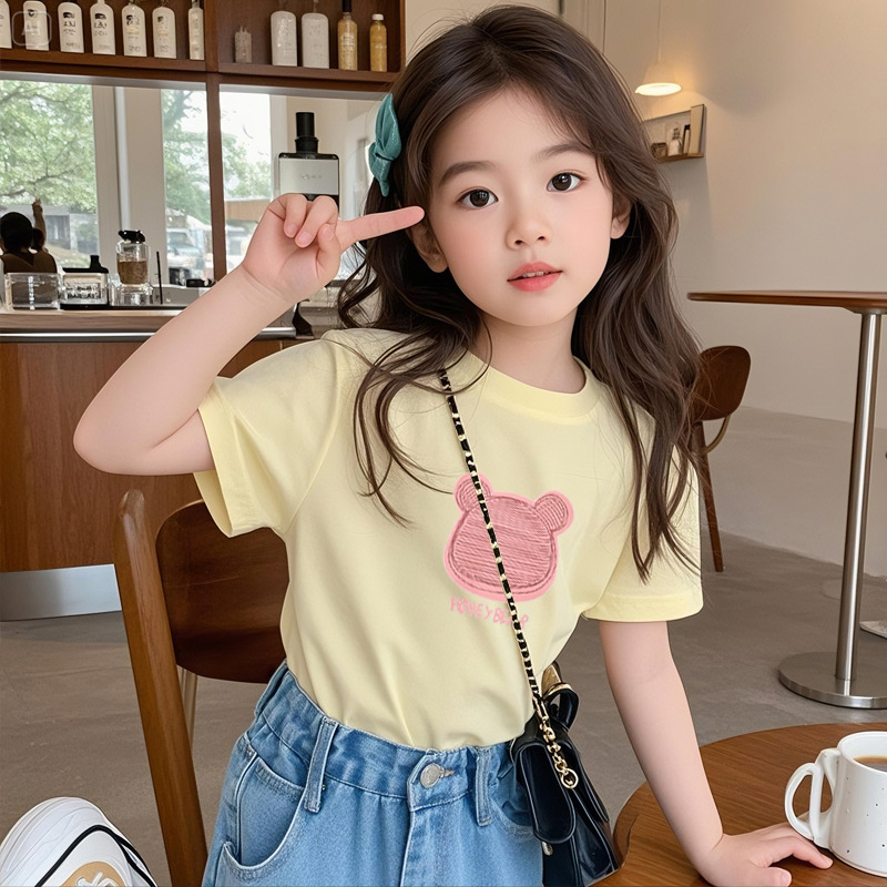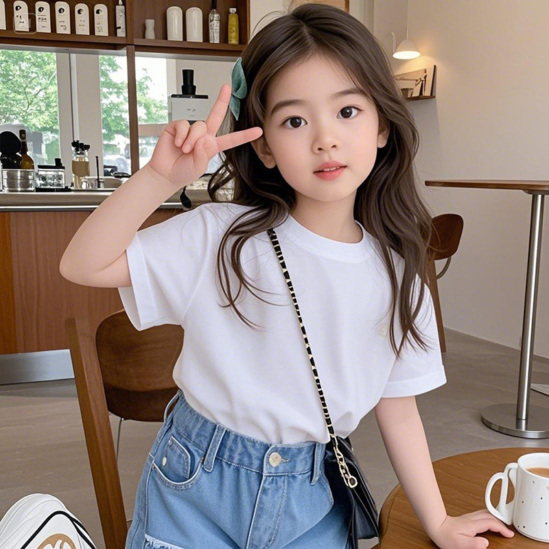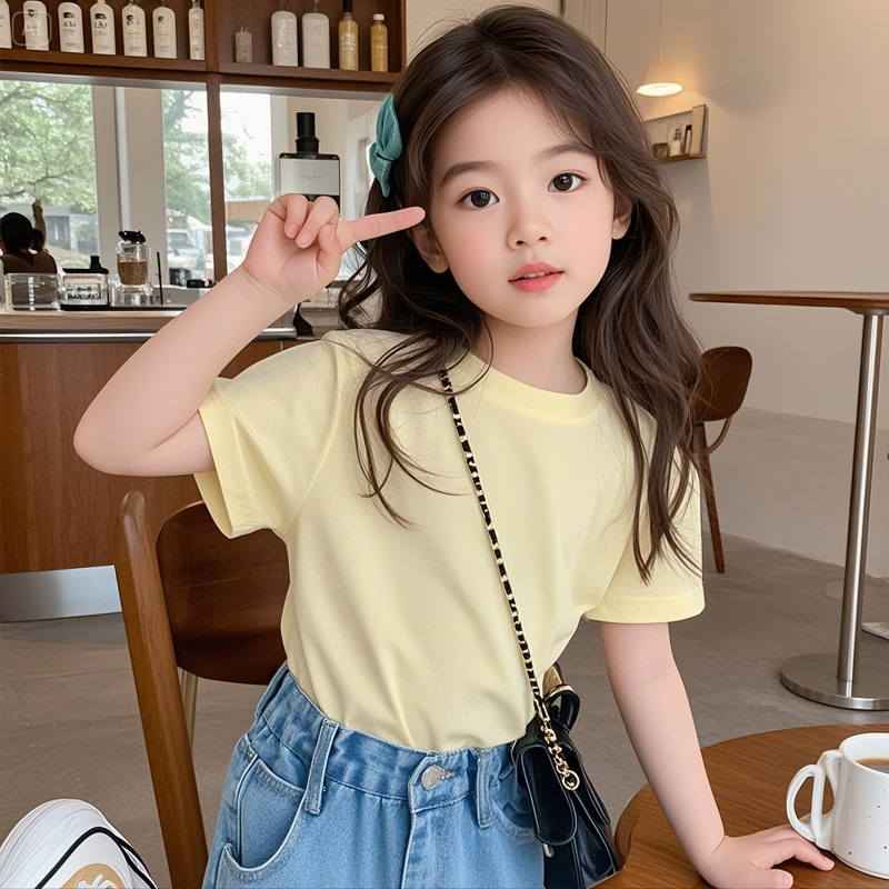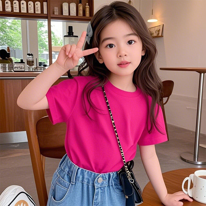 여아 반팔 티셔츠 반팔 루즈 2025년 신작 여름 아동용 순면 상의 중대형 아동 여아 패션 여름스토어 가기