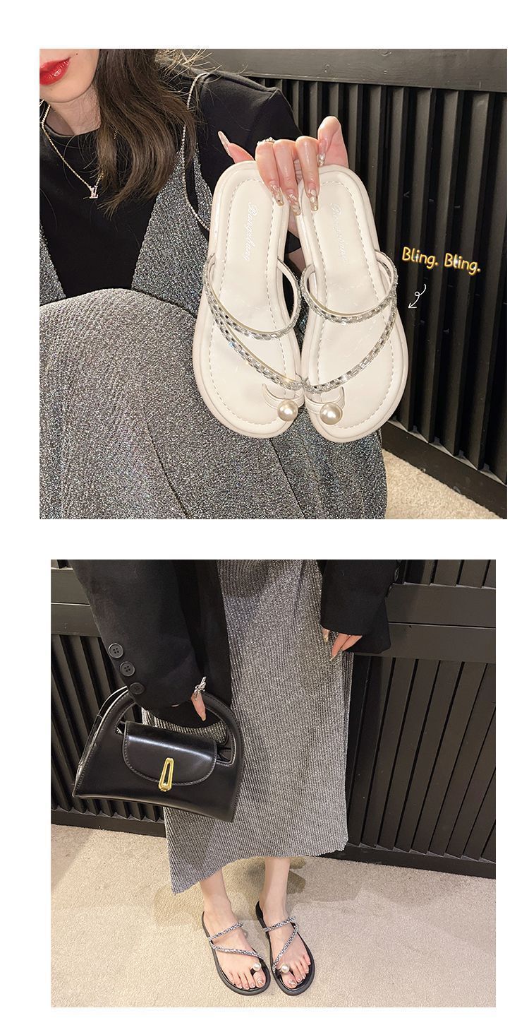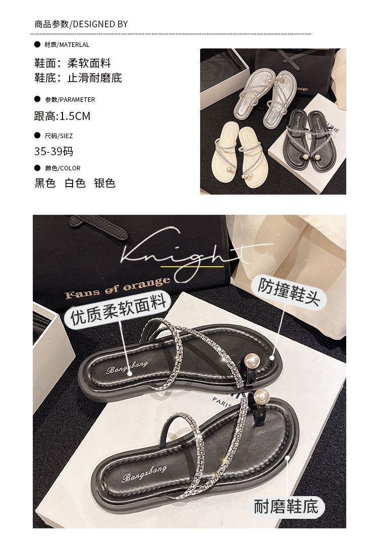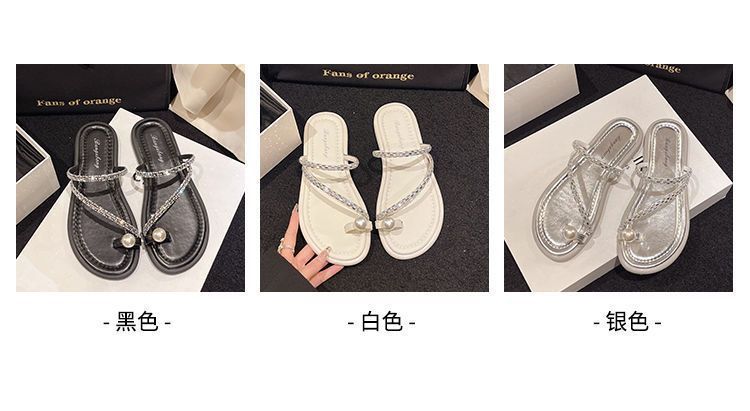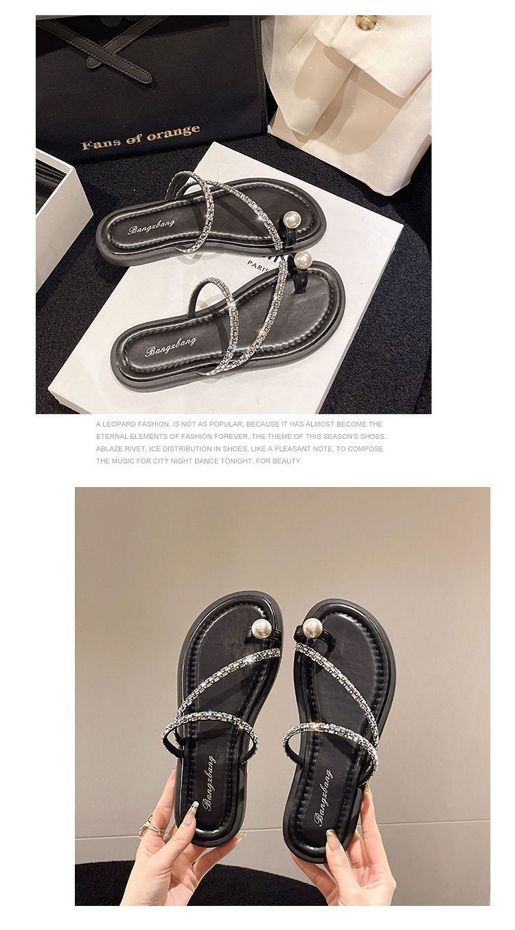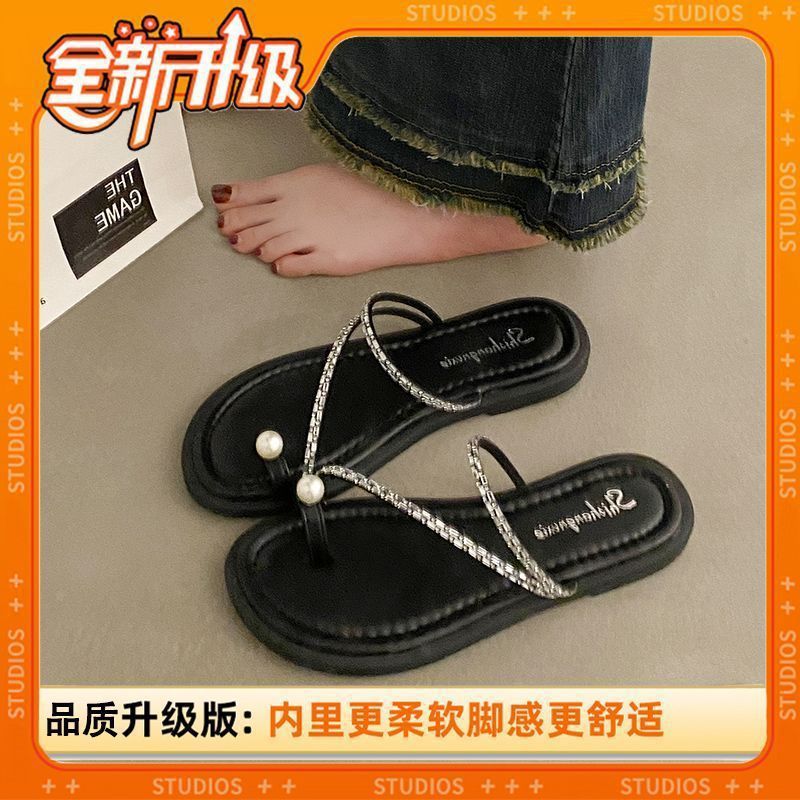 여름 여성을 위한 인터넷 연예인 진주 슬리퍼 새로운 플랫 바닥 요정 스타일 슬립온 비치 샌들 부드러운 밑창 미끄럼 방지 샌들스토어 가기