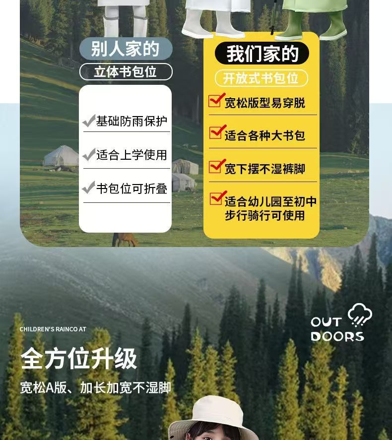 남학생과 여학생을 위한 아동용 비옷, 초등학생을 위한 특별한 방수 패션, 새로운 청소년 책가방 및 비옷스토어 가기