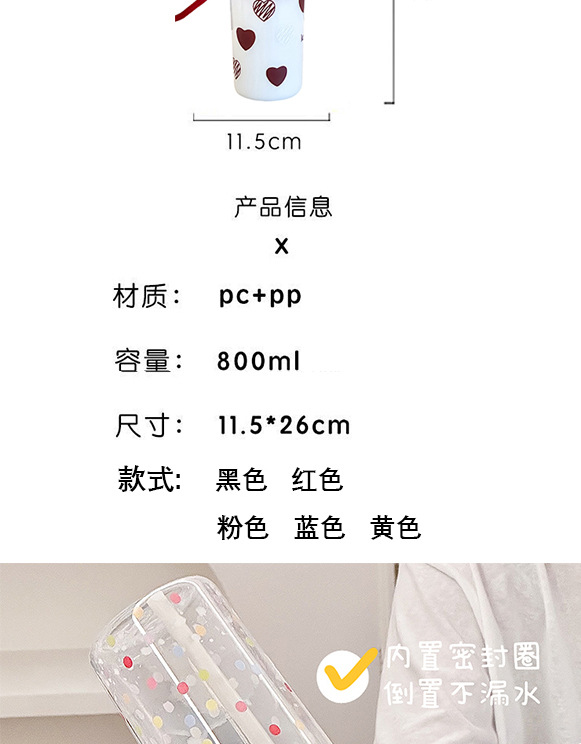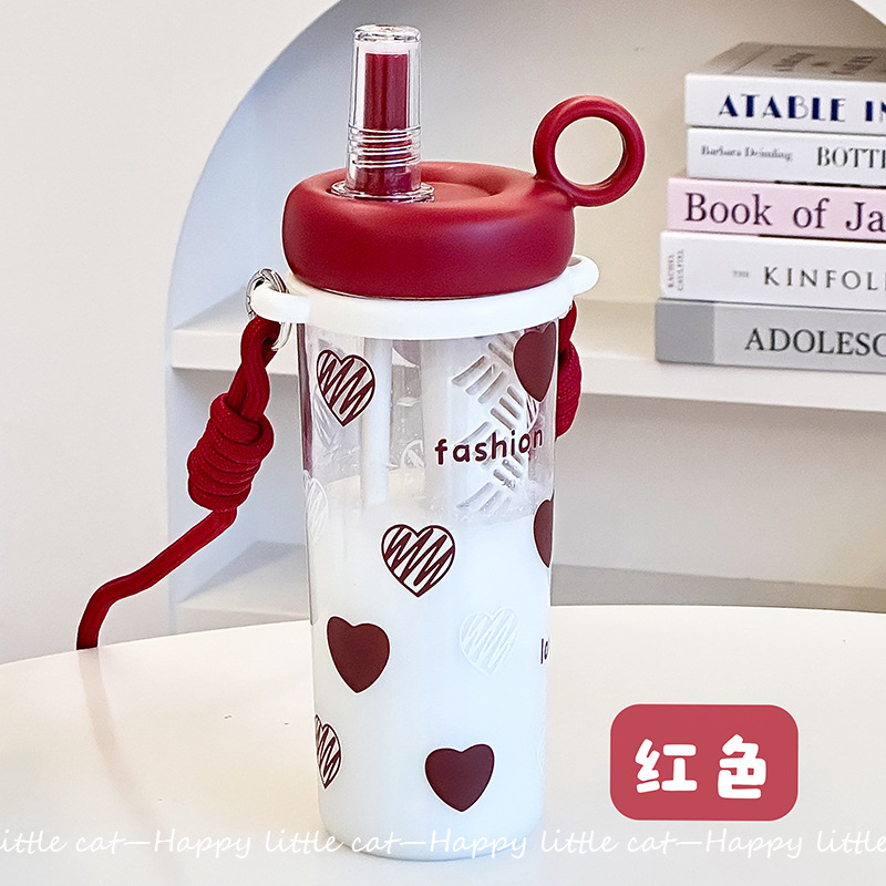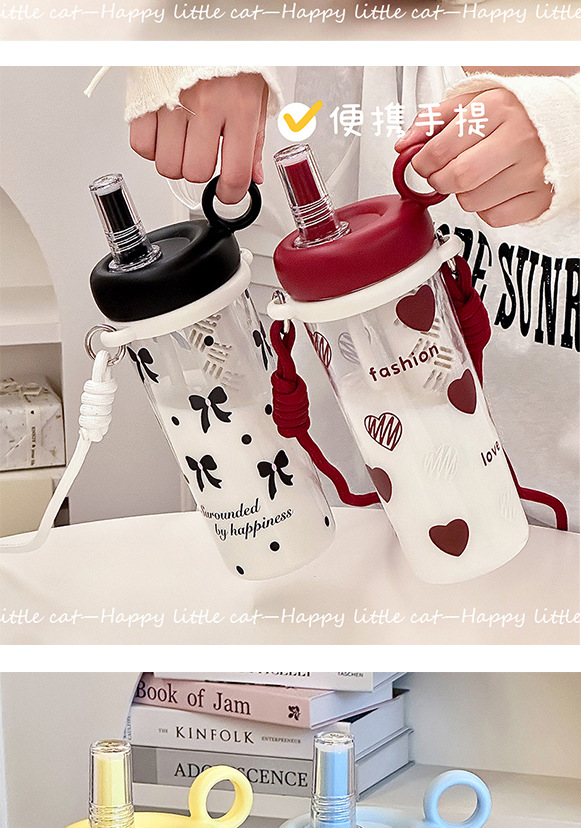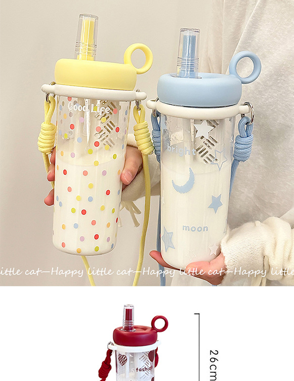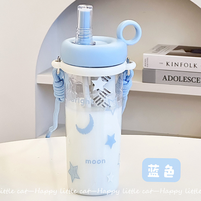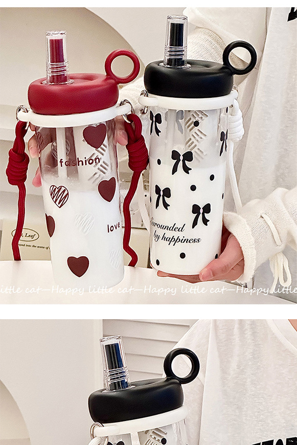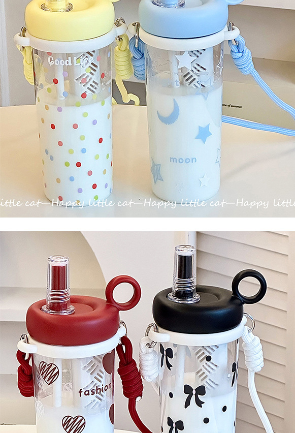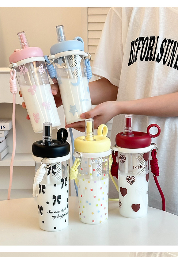 외모가 좋고 대용량 플라스틱 컵을 가진 소녀들을 위한 간단한 물컵, 빨대와 차 물 분리 기능이 있는 간단한 야외 컵스토어 가기