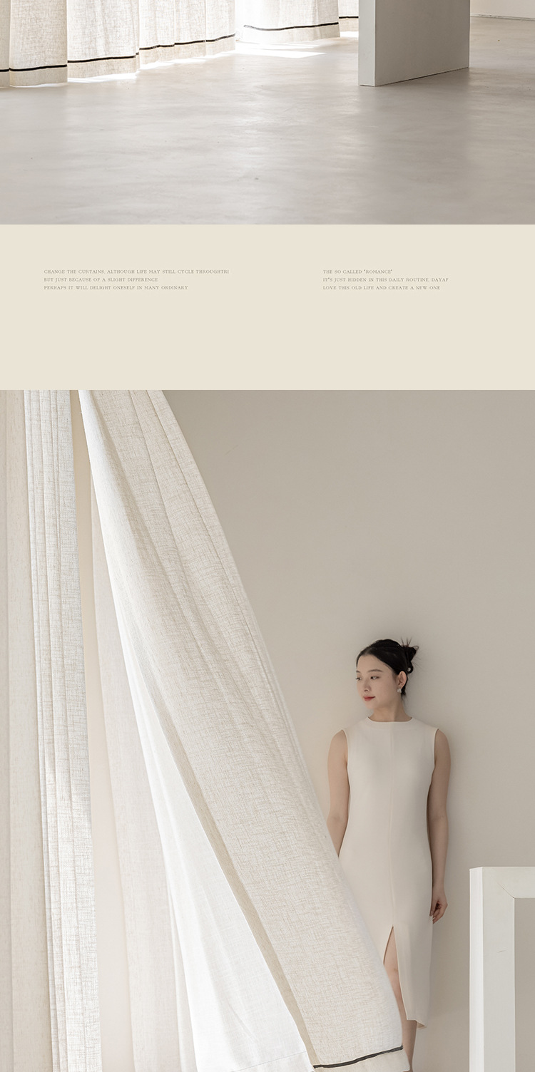 • 크림 과립 린넨 거즈 [단단 검정색 가장자리]