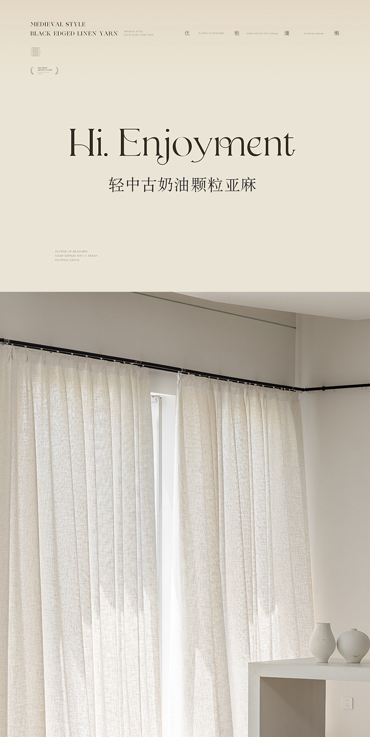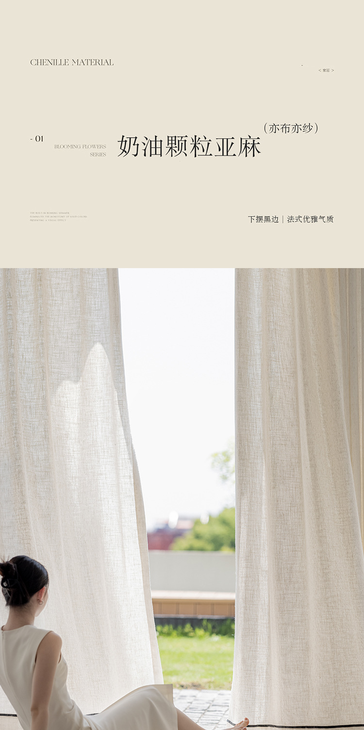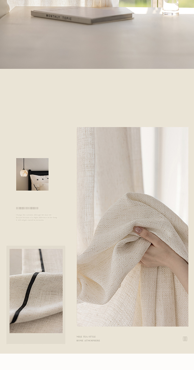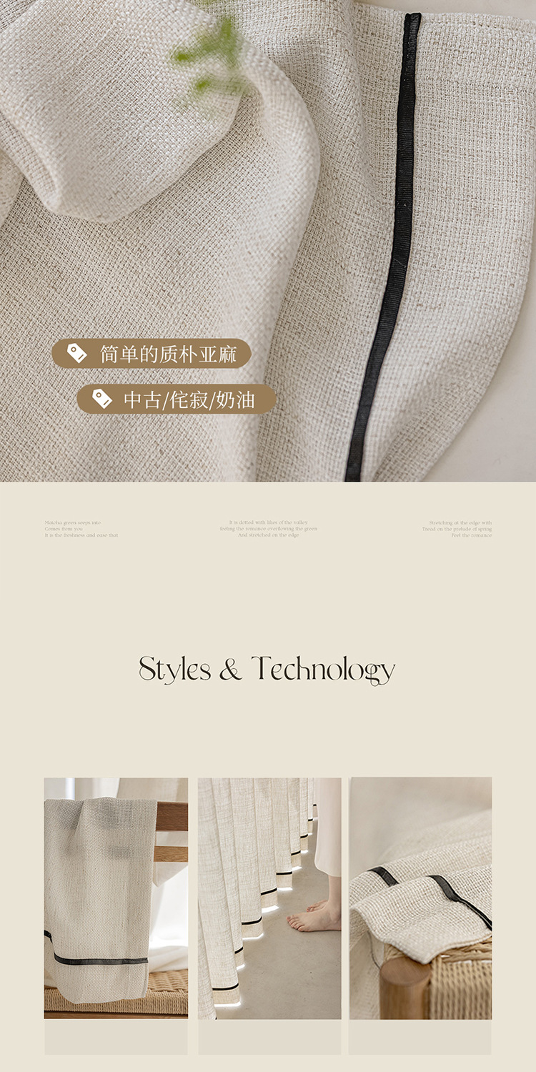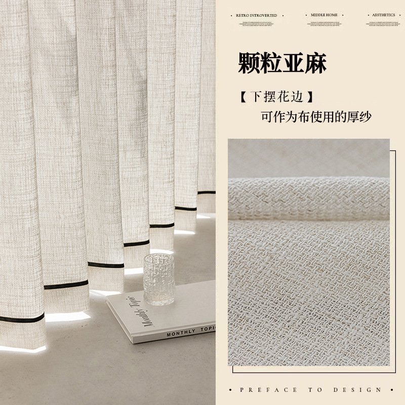 블랙 엣지 린넨 원사 크림 중고 침실 및 거실 고급 와비사비 면 및 린넨 창문 스크린 천과 원사 모두가 있는 Keqiao 커튼스토어 가기