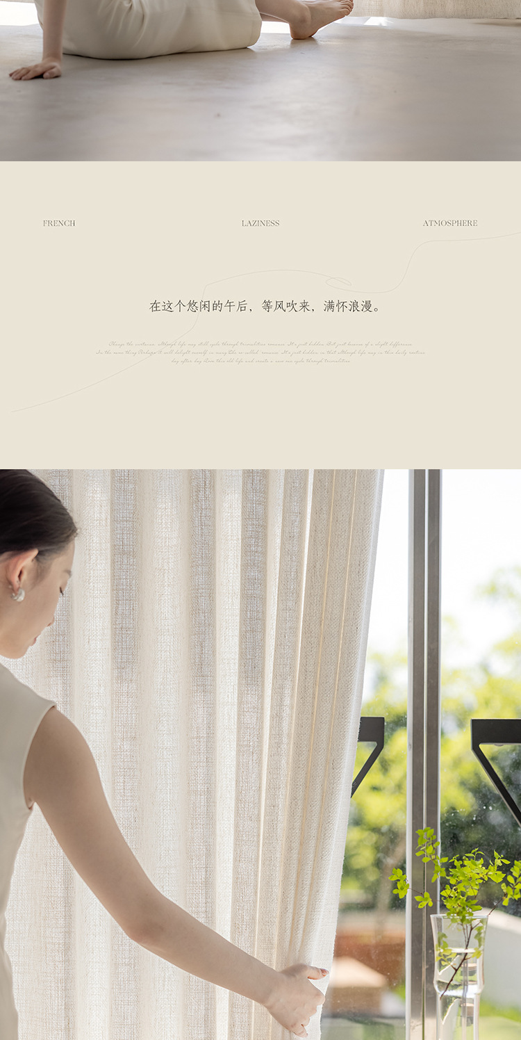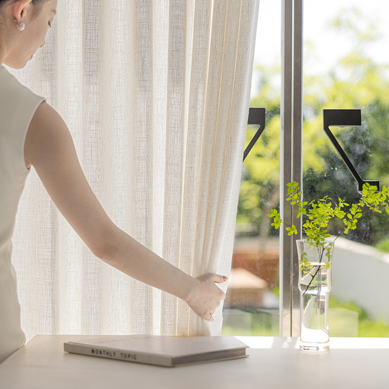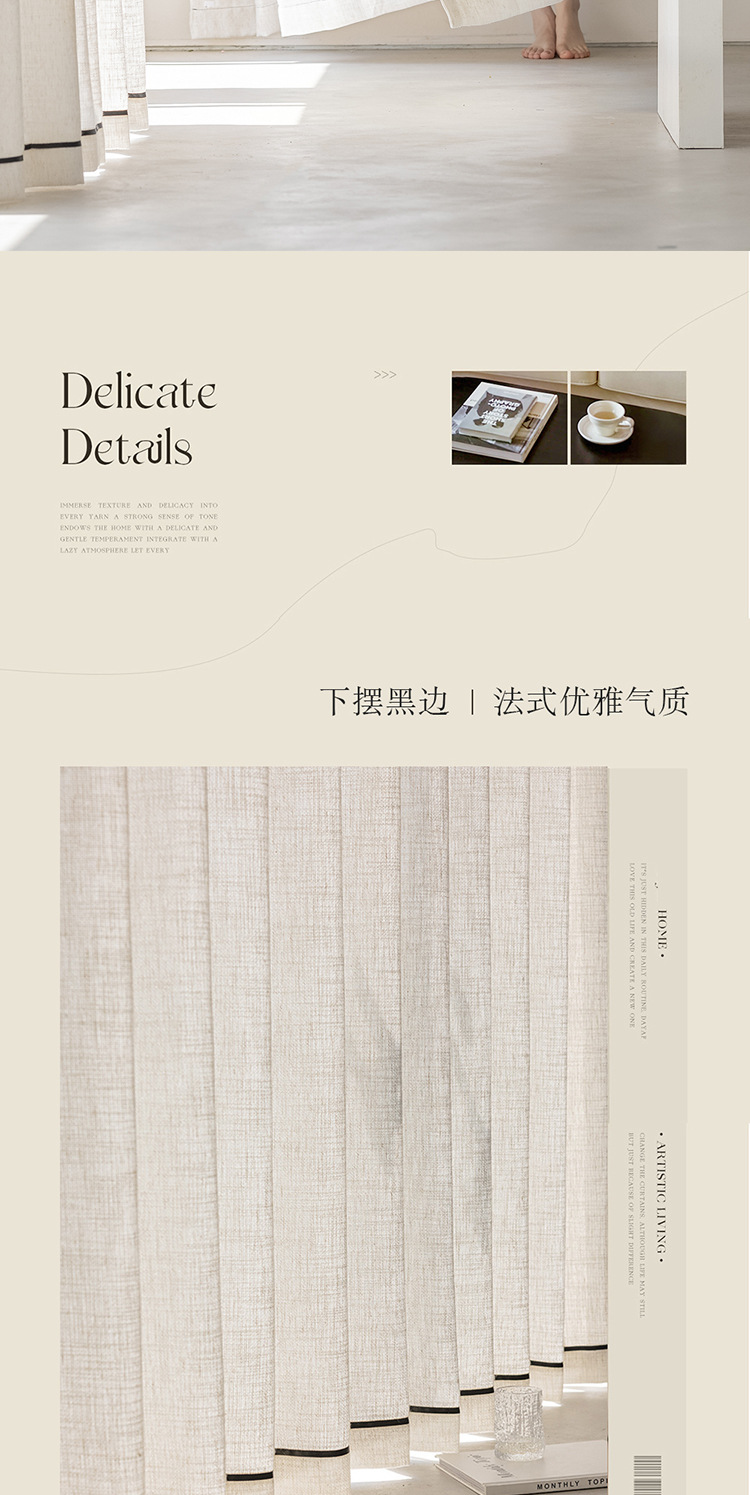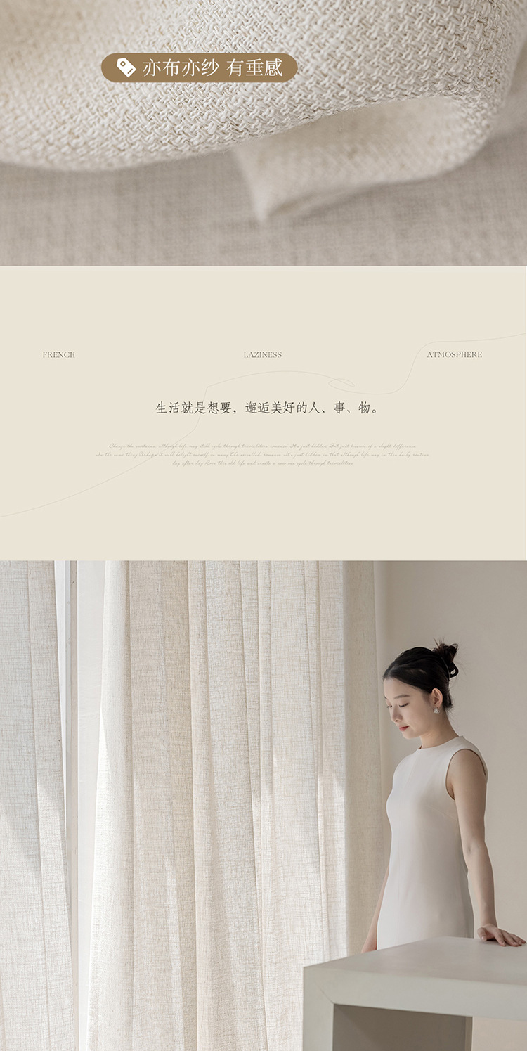 블랙 엣지 린넨 원사 크림 중고 침실 및 거실 고급 와비사비 면 및 린넨 창문 스크린 천과 원사 모두가 있는 Keqiao 커튼스토어 가기