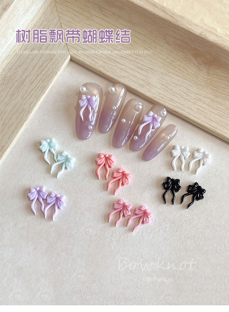 새로운 나비 매듭 네일 아트 액세서리 혼합 마카롱 플로팅 나비 넥타이 수지 네일 다이아몬드 달콤한 장식품 도매