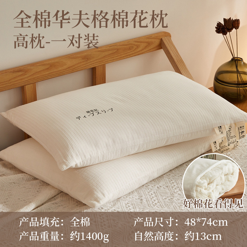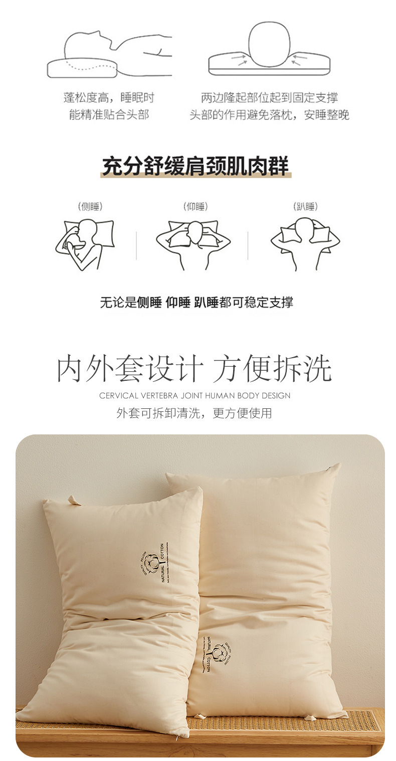 면 베개 코어 신장 긴 스테이플 면 충전 경추 베개 성인 베개 어린이 순면 학생 목 베개스토어 가기