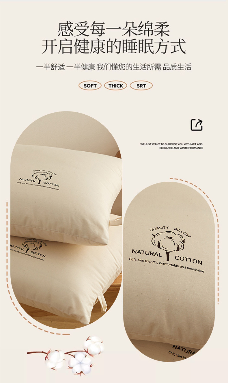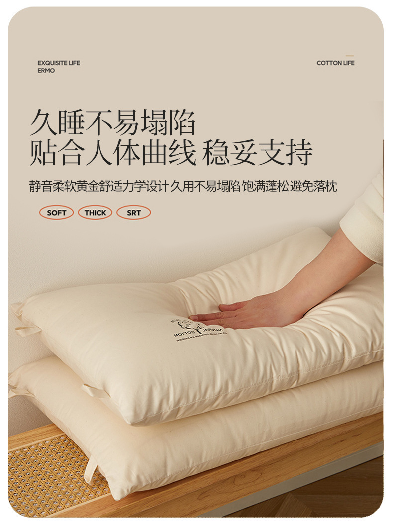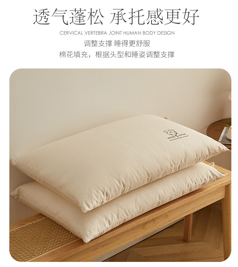 면 베개 코어 신장 긴 스테이플 면 충전 경추 베개 성인 베개 어린이 순면 학생 목 베개