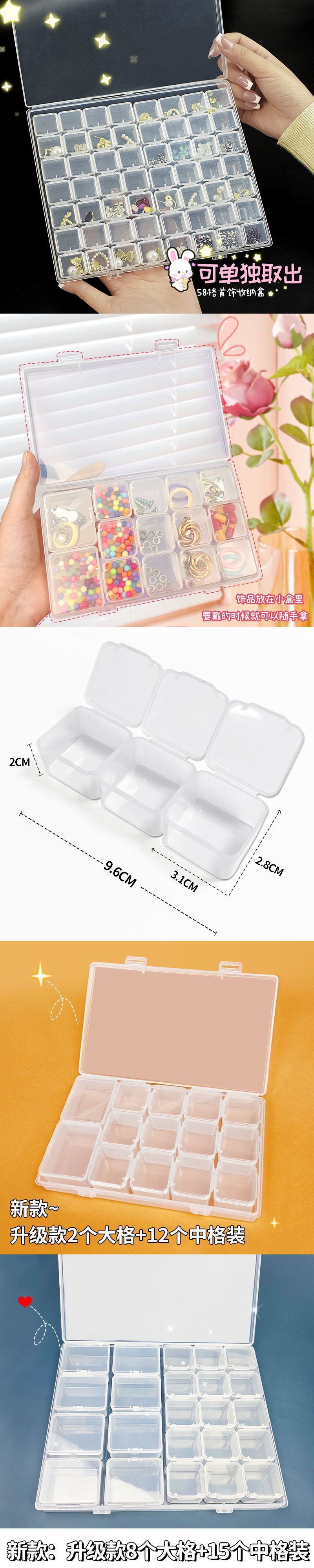 네일 아트 다기능 보관 상자 약 상자 진주 귀걸이 목걸이 반지 보석 휴대용 멀티 그리드 투명 보석 상자