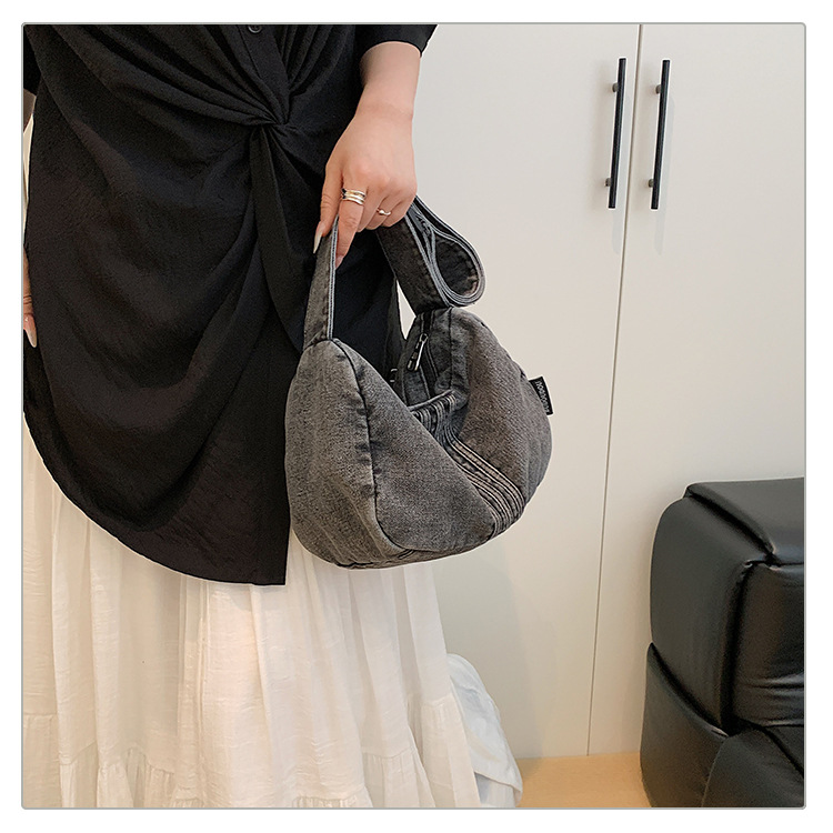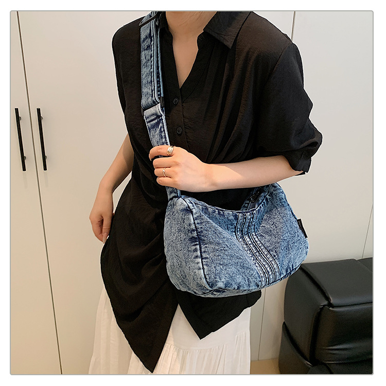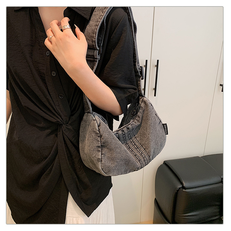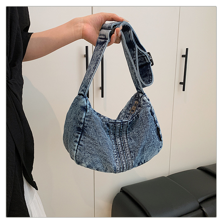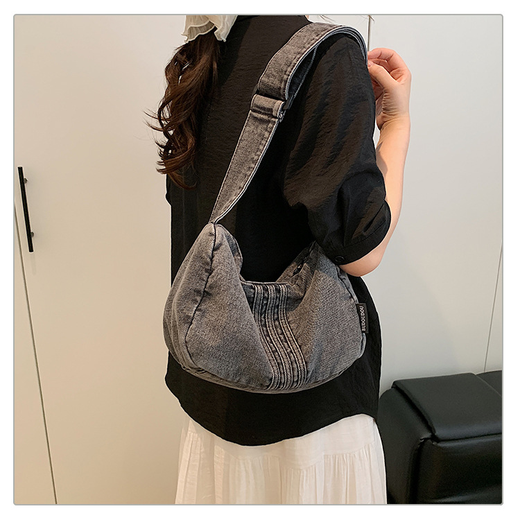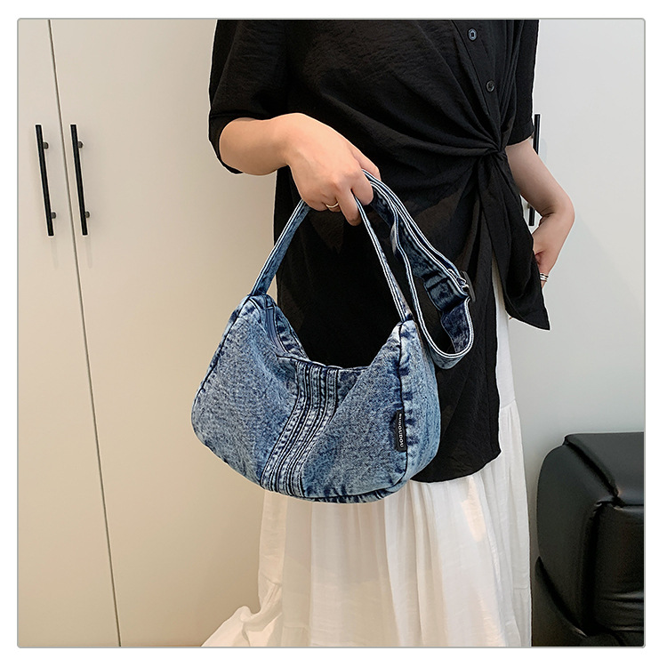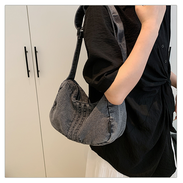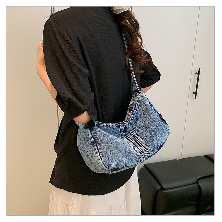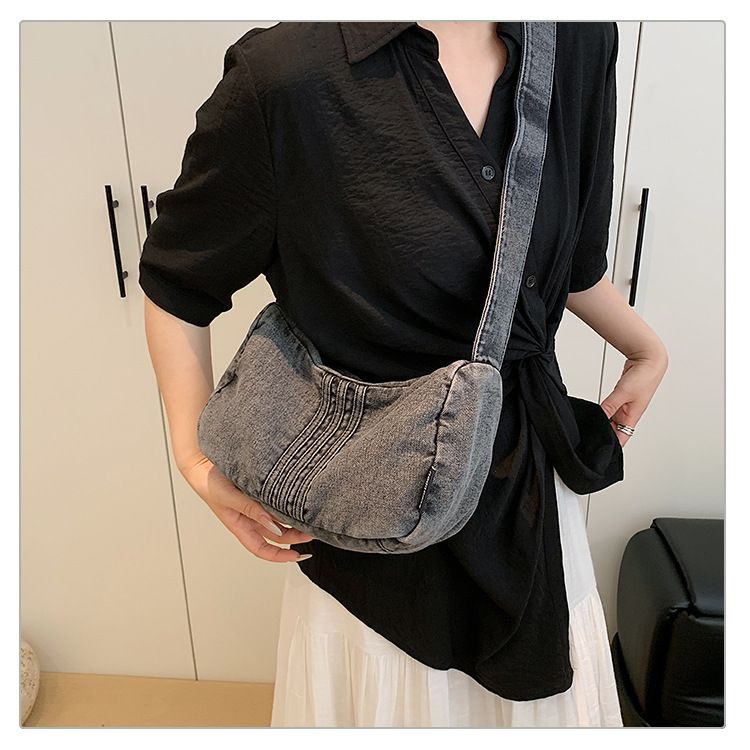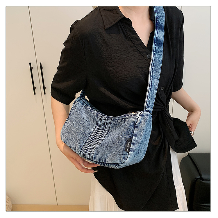 여성을위한 복고풍 스타일 데님 가방 2024 여름 새로운 고급 질감 틈새 캐주얼 다목적 어깨 크로스 바디 백