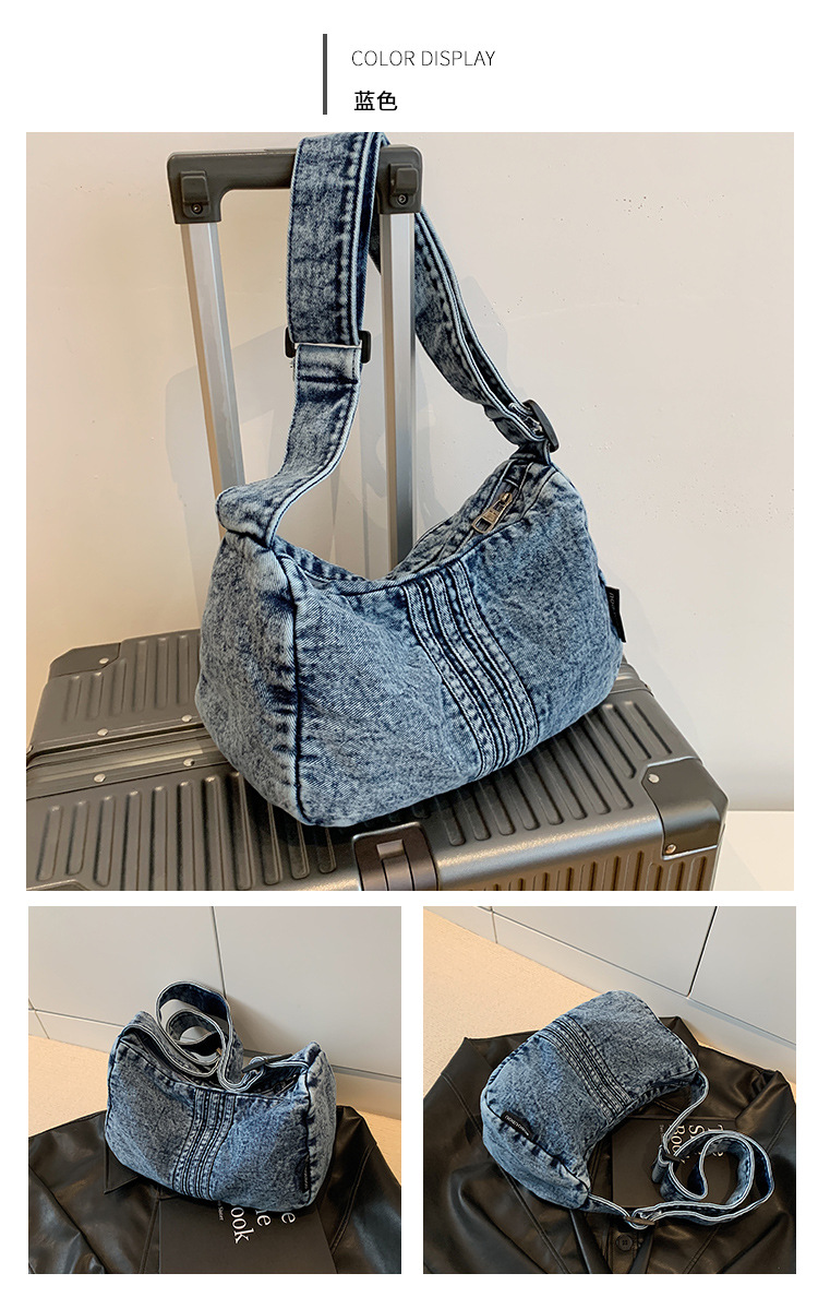 여성을위한 복고풍 스타일 데님 가방 2024 여름 새로운 고급 질감 틈새 캐주얼 다목적 어깨 크로스 바디 백스토어 가기