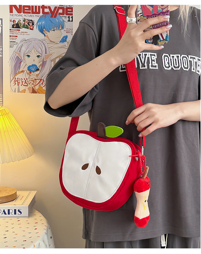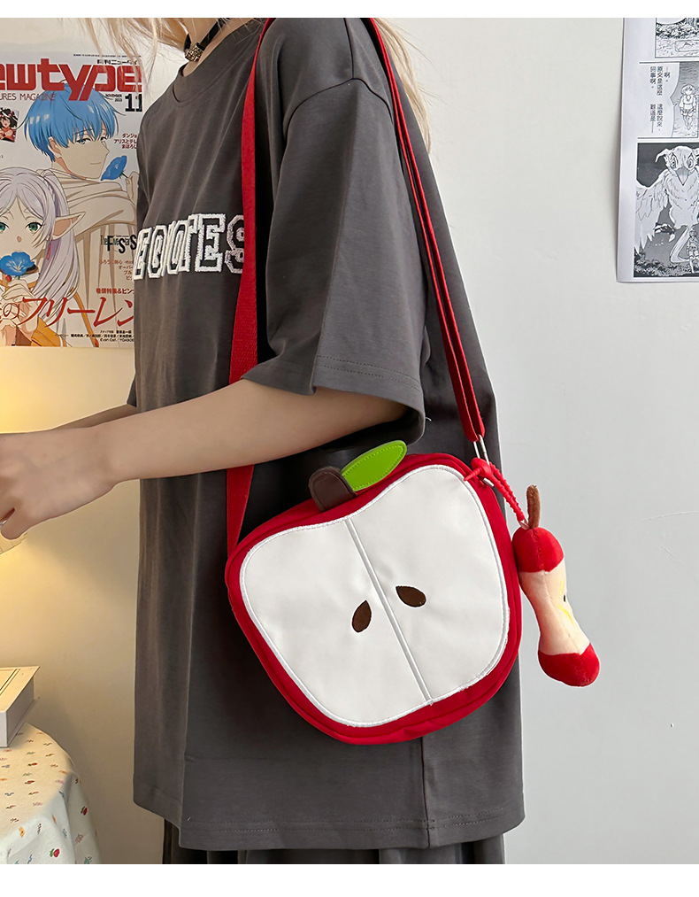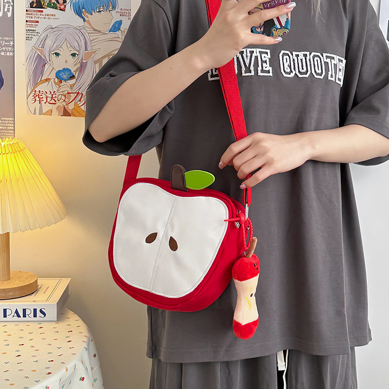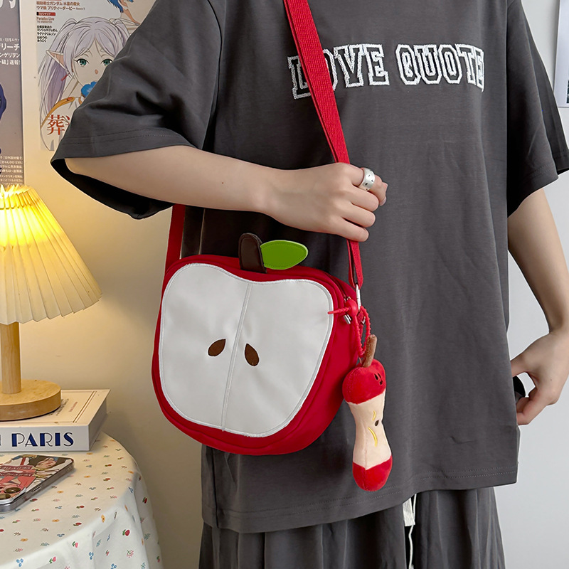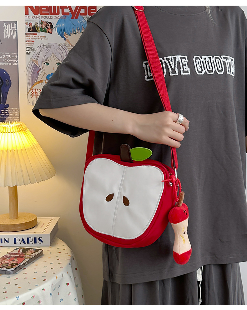 일본의 새로운 스타일 신선하고 달콤하고 귀여운 사과 모양의 학교 가방 여성 캐주얼 간단한 경량 통근 야외 크로스 바디 백스토어 가기