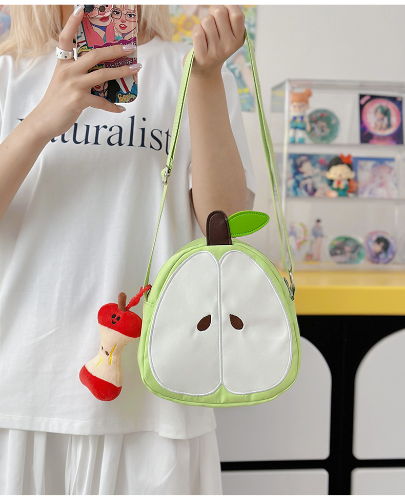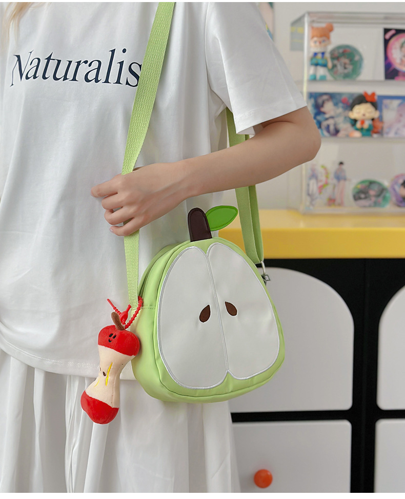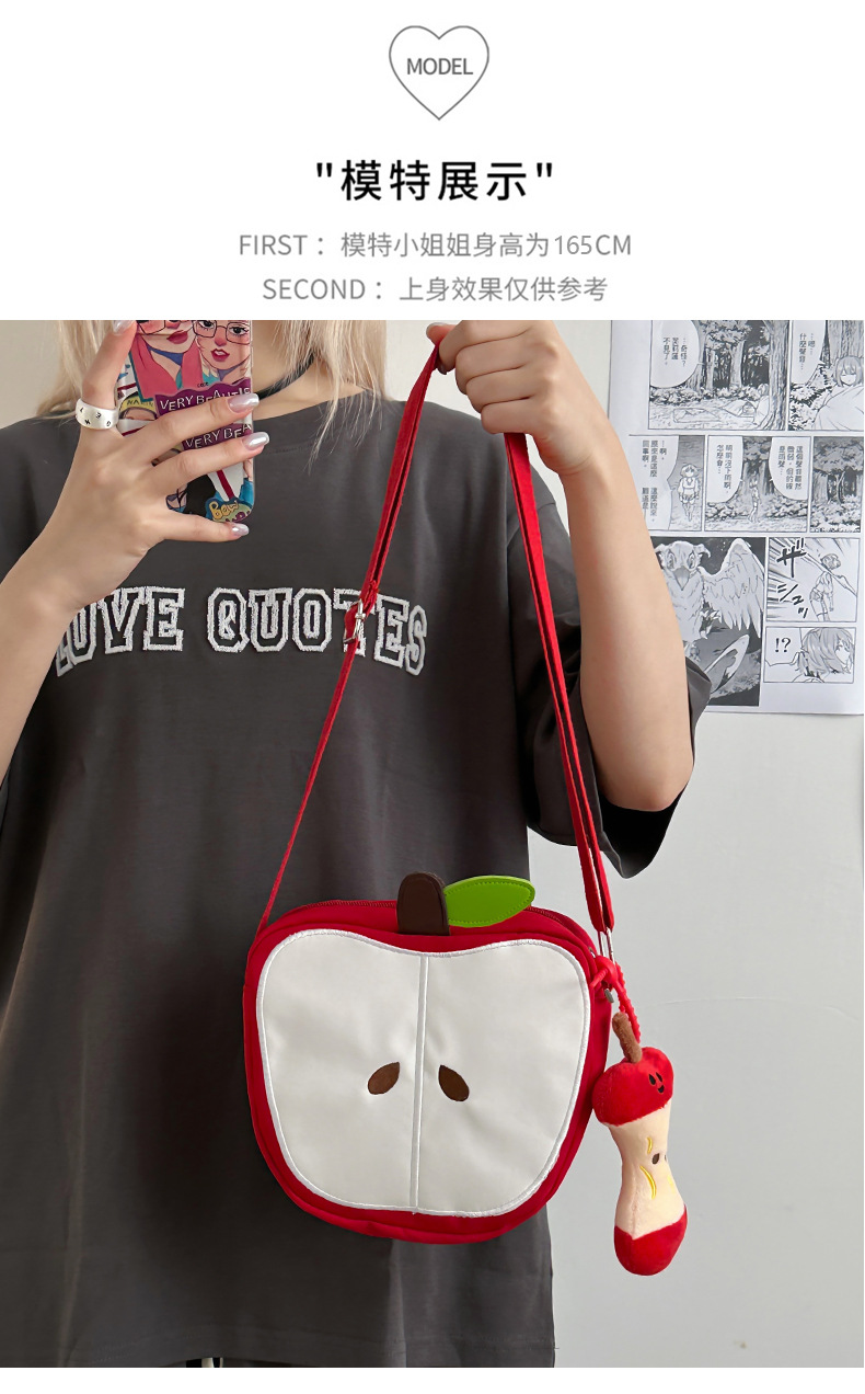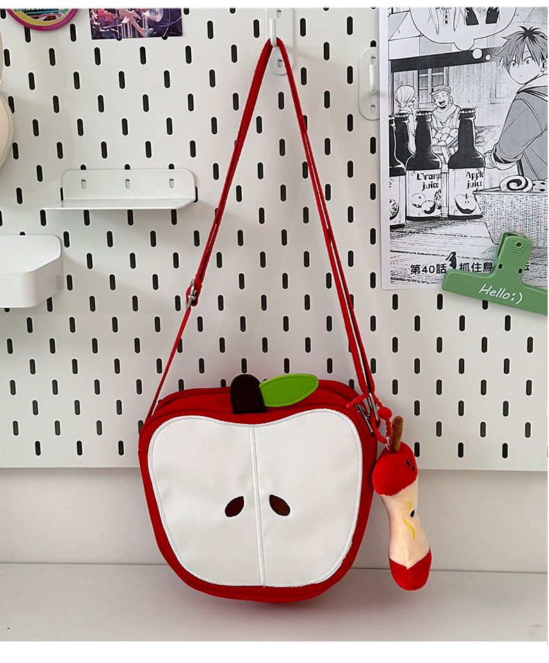 일본의 새로운 스타일 신선하고 달콤하고 귀여운 사과 모양의 학교 가방 여성 캐주얼 간단한 경량 통근 야외 크로스 바디 백스토어 가기