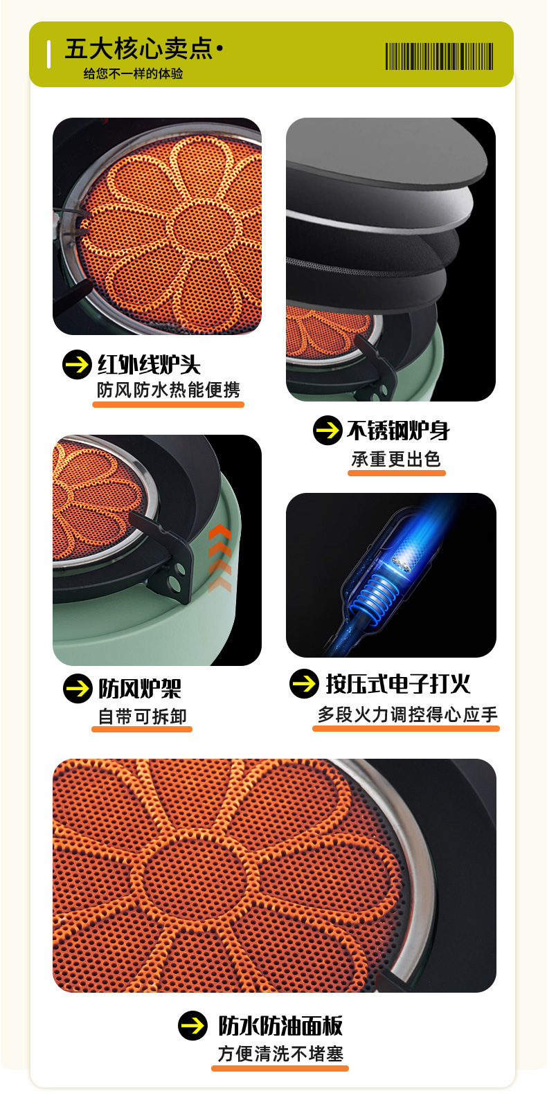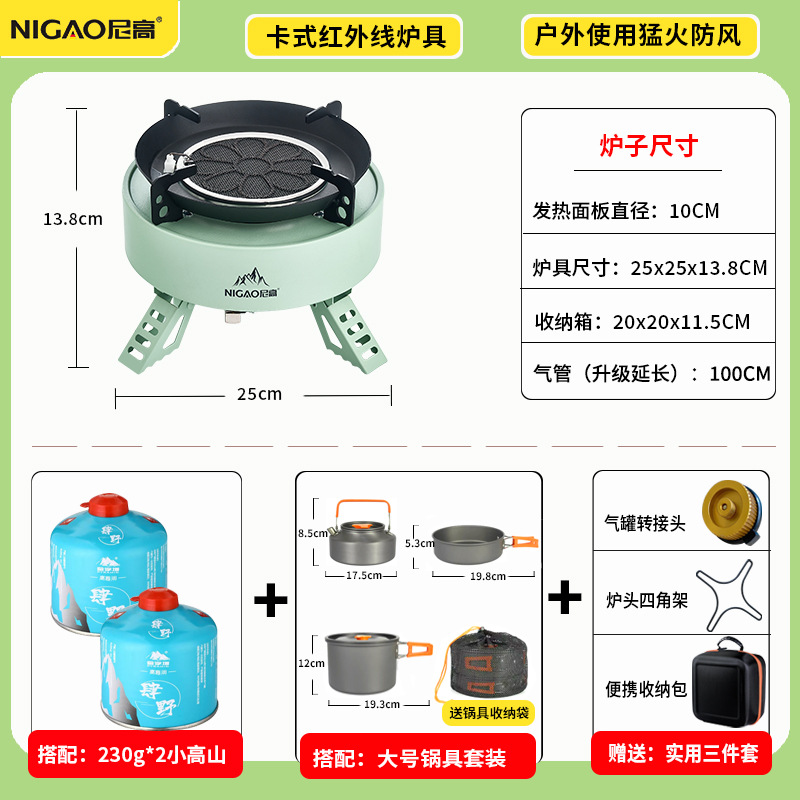 에너지 절약형 스토브 야외 분할 캠핑 피크닉 야외 가스 적외선 화재 스토브 차 스토브 세트