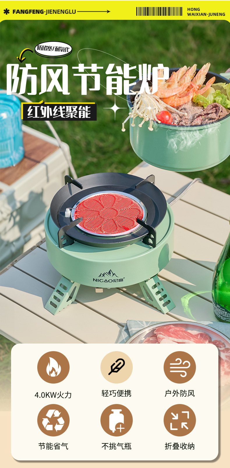 에너지 절약형 스토브 야외 분할 캠핑 피크닉 야외 가스 적외선 화재 스토브 차 스토브 세트스토어 가기