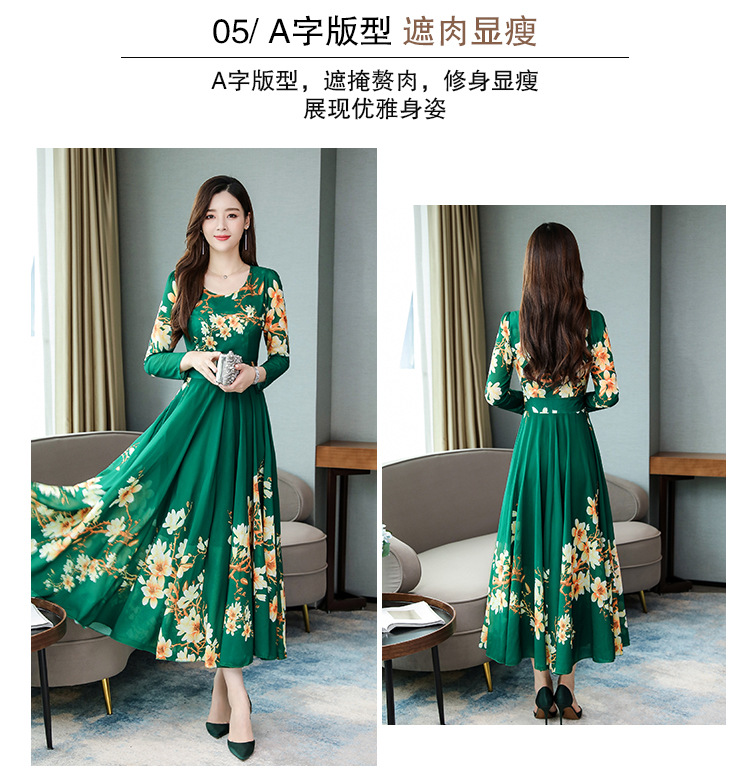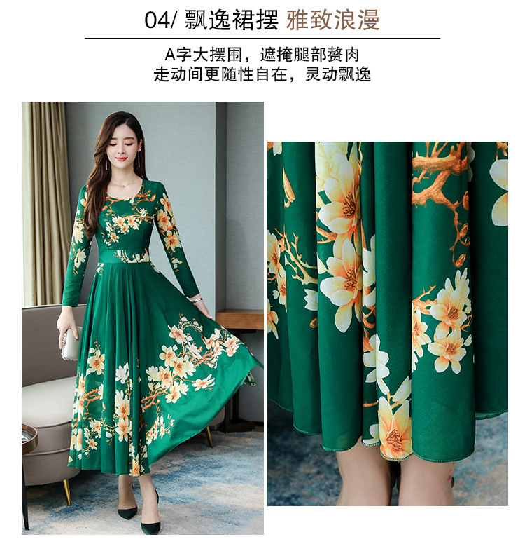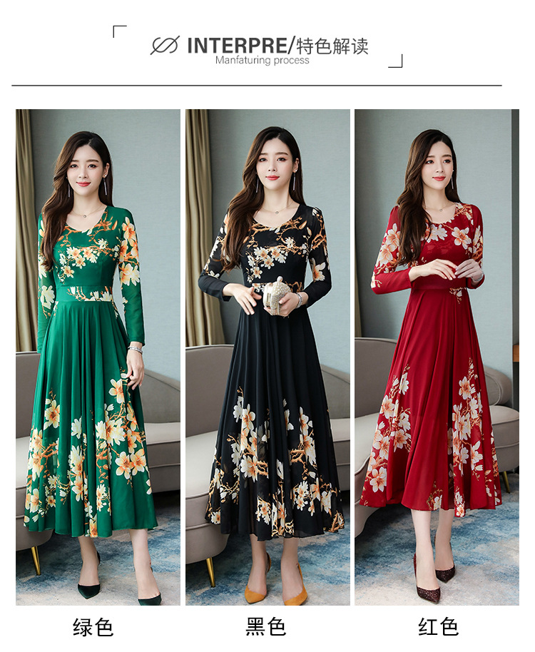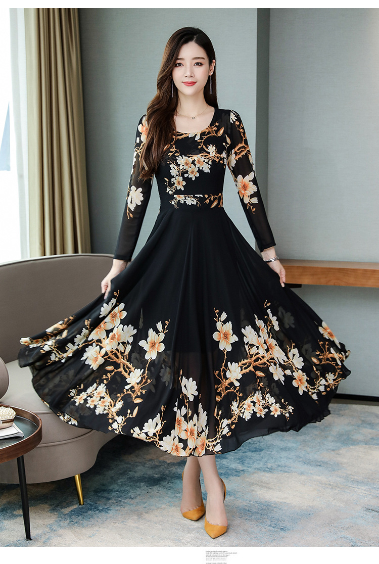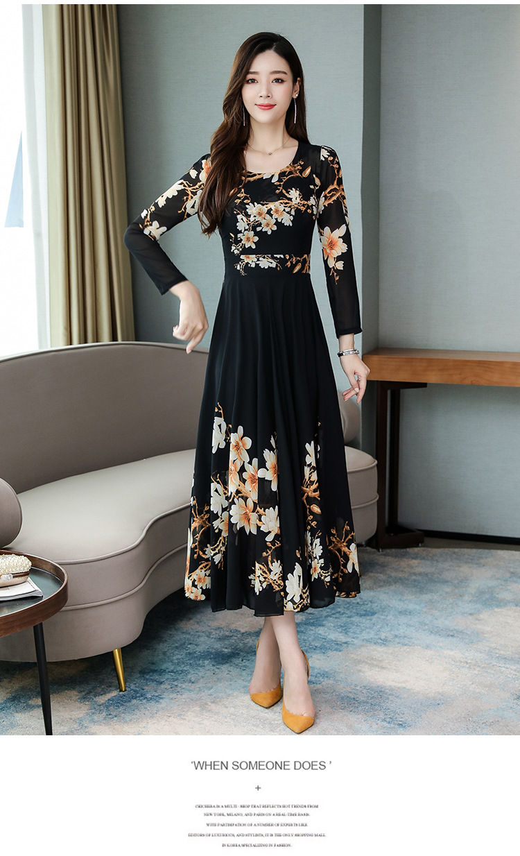 2025 봄 새로운 기질 한국 스타일 여성 인기 플러스 사이즈 긴팔 드레스 중간 길이 꽃무늬 스커트