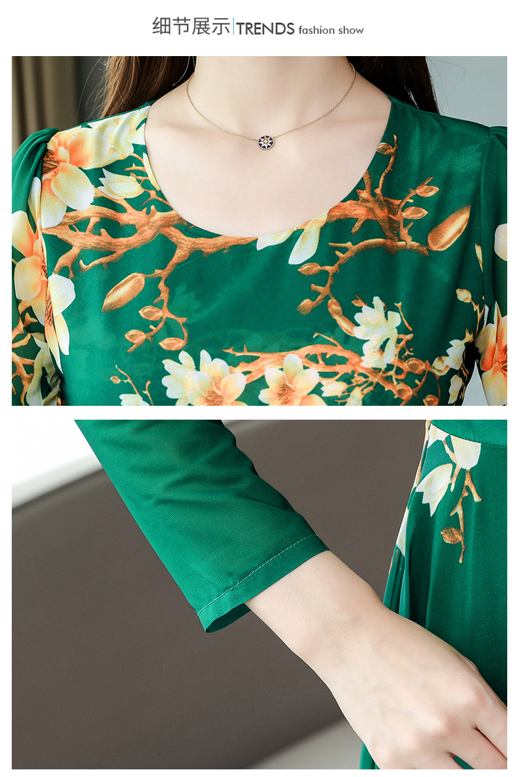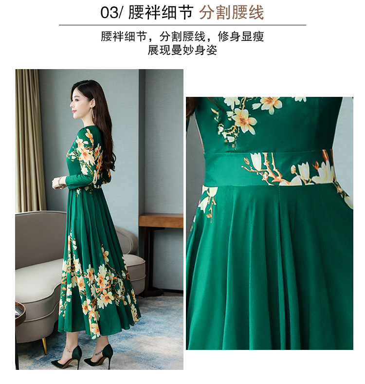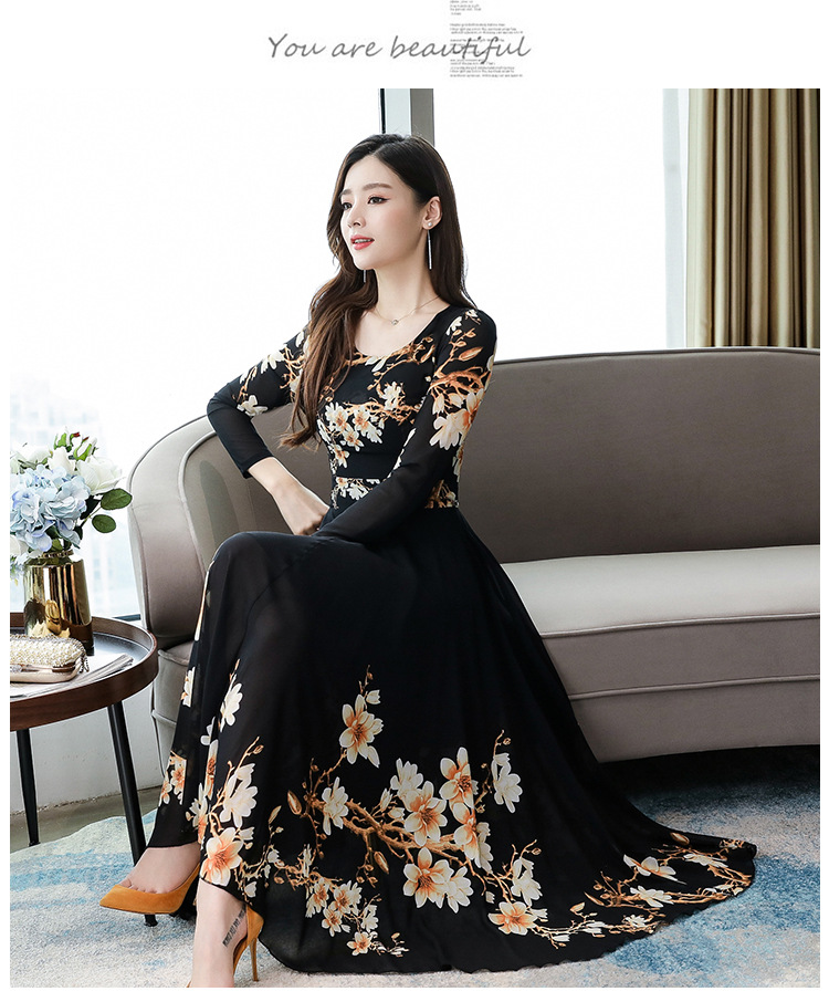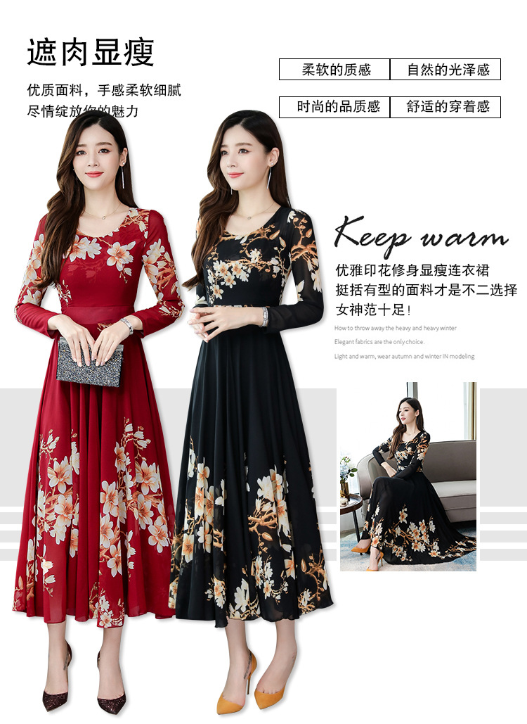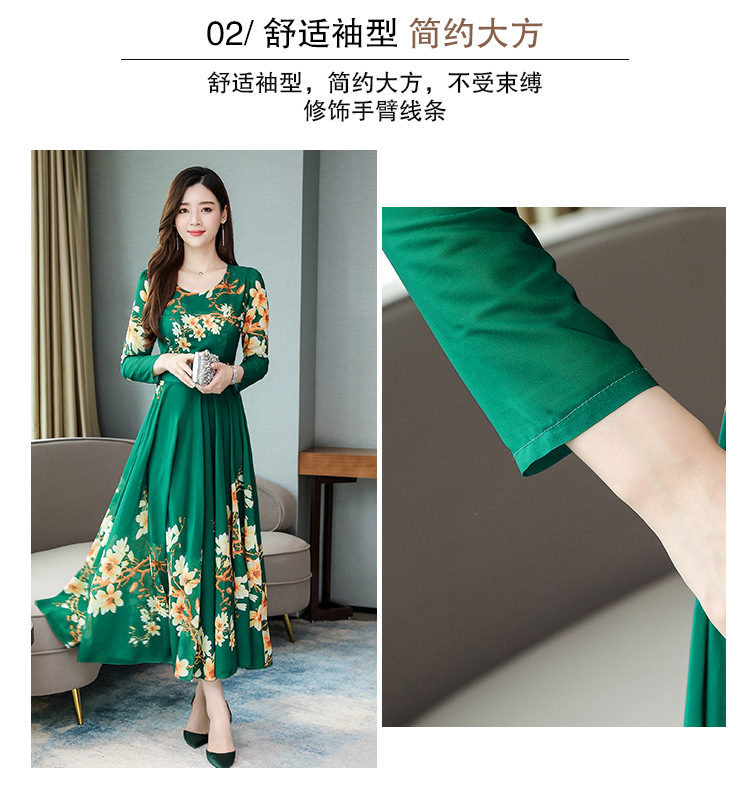 2025 봄 새로운 기질 한국 스타일 여성 인기 플러스 사이즈 긴팔 드레스 중간 길이 꽃무늬 스커트