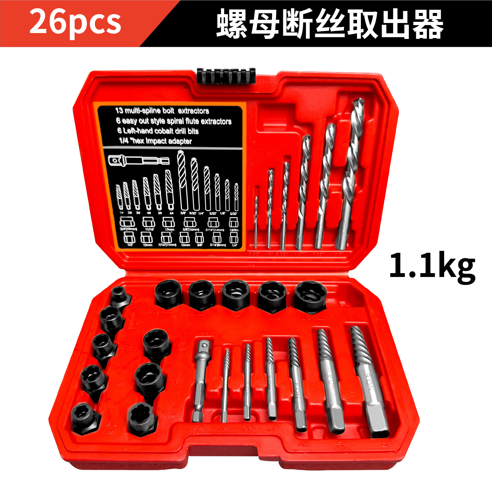 26pcs 너트 추출기 손상된 누락 너트 추출기 육각 너트 제거 슬리브 세트 도구