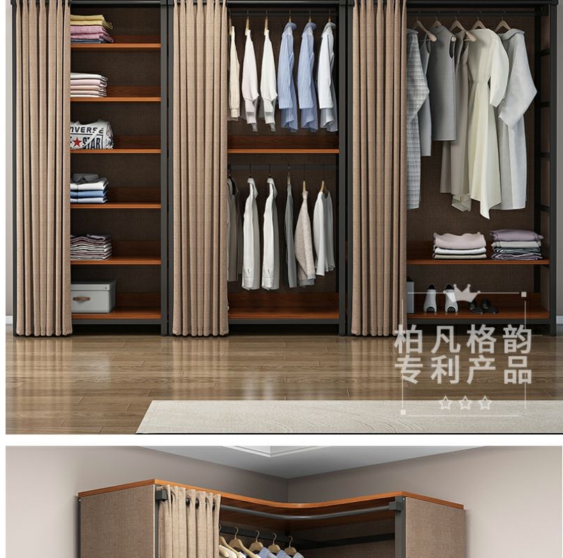 침실 코트 랙, 바닥에서 천장까지 개방형 옷걸이, 벽 옷장, 다기능 간이 옷장, 금속 옷걸이
