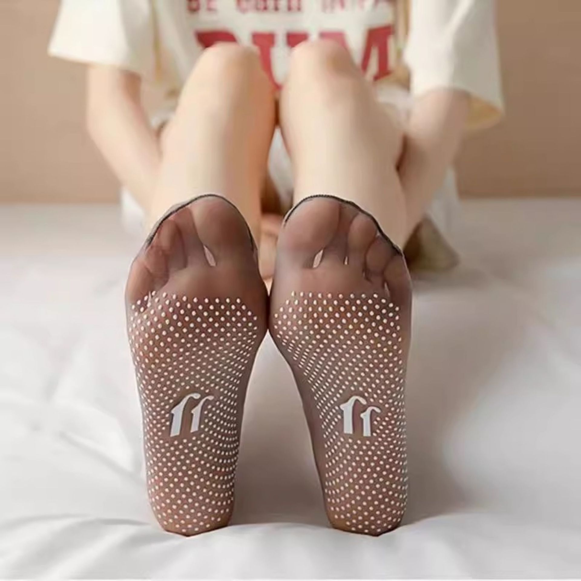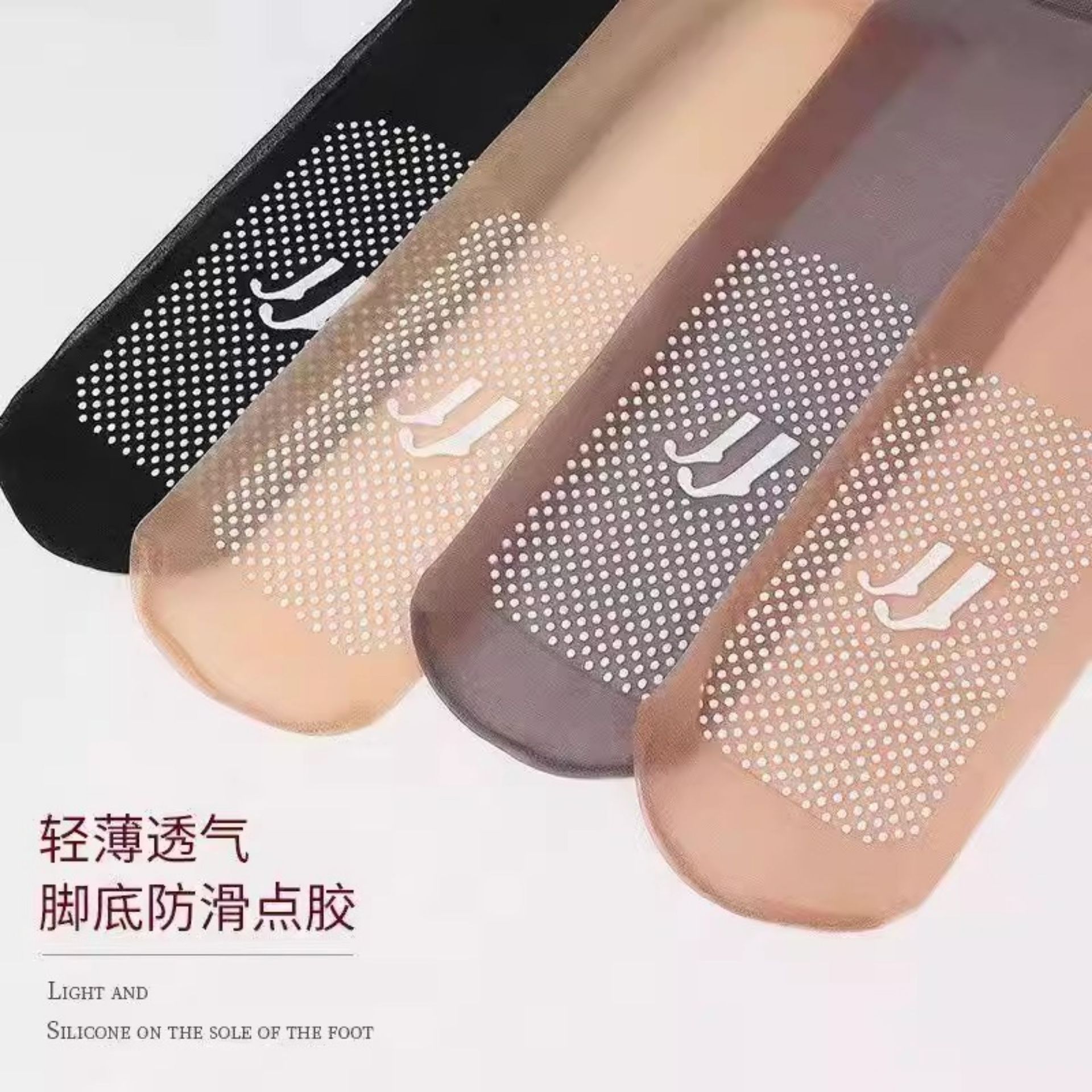 미끄럼 방지 스타킹 여성용 짧은 양말 여름 얇은 크리스탈 실크 중간 튜브 양말 안티 후크 투명 여성용 양말