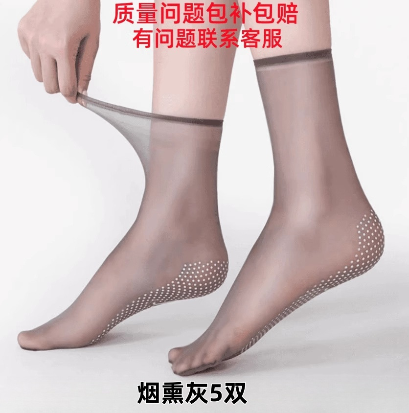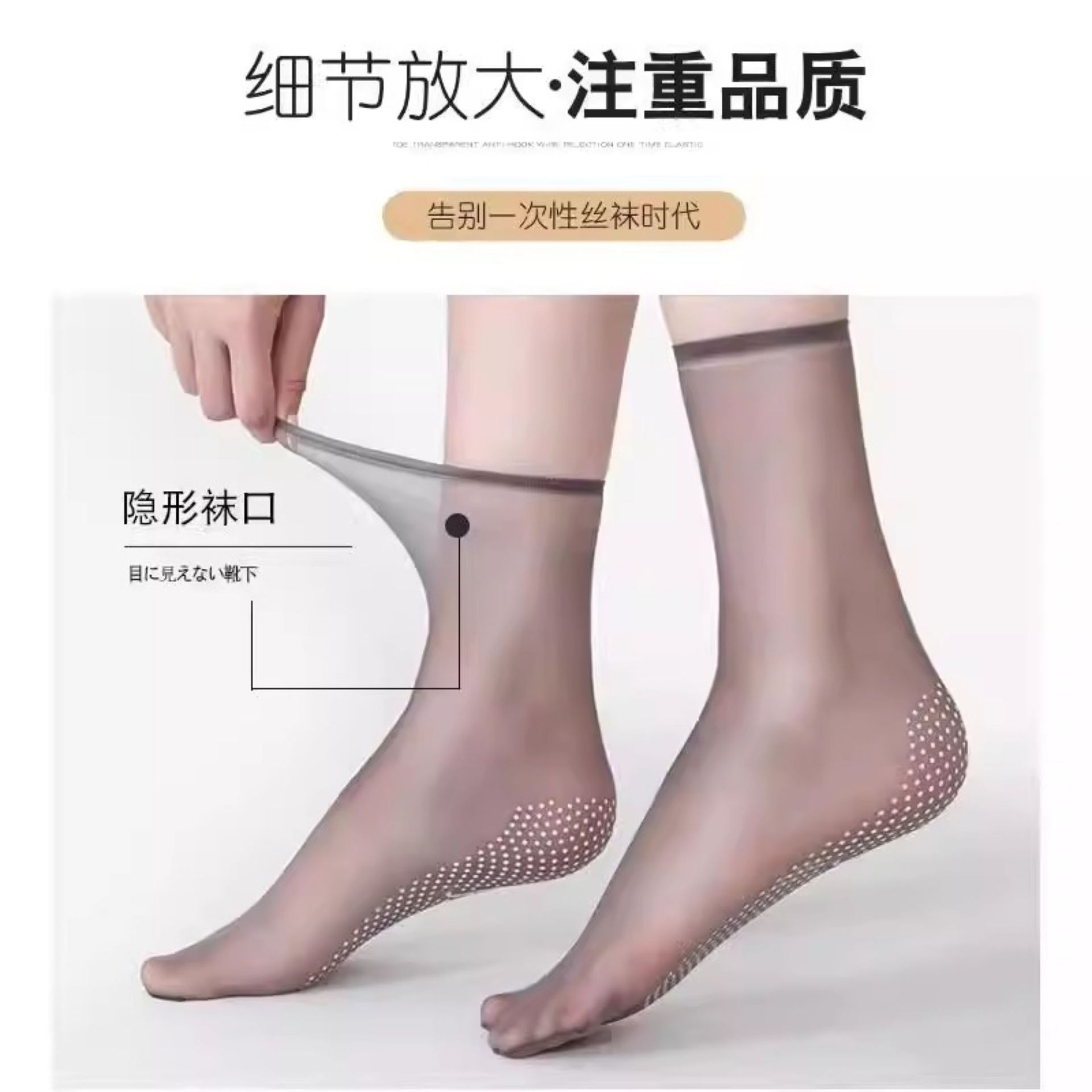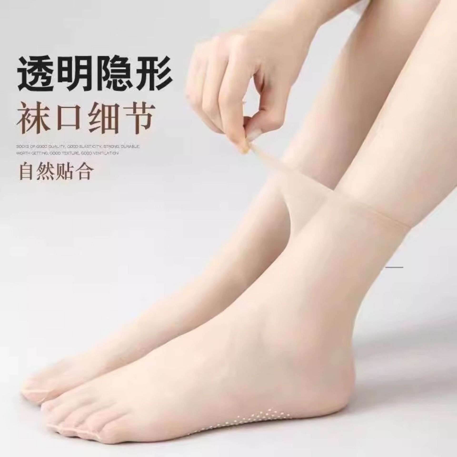 미끄럼 방지 스타킹 여성용 짧은 양말 여름 얇은 크리스탈 실크 중간 튜브 양말 안티 후크 투명 여성용 양말스토어 가기
