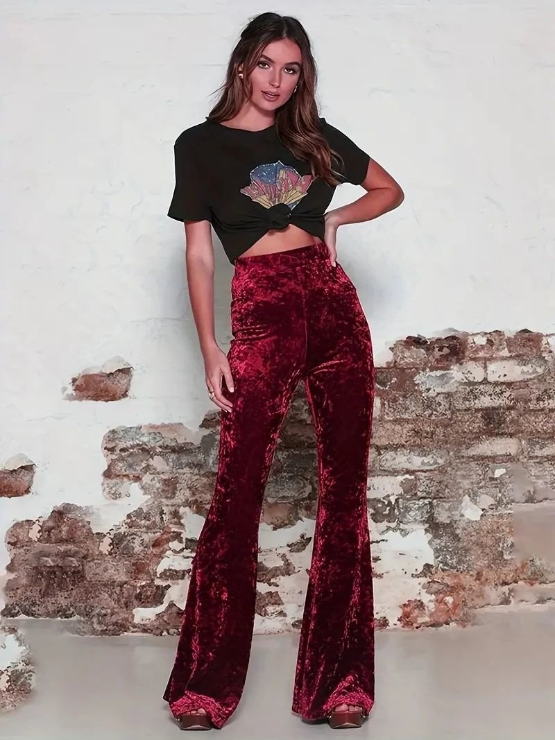 솔리드 컬러 신축성 있는 허리 와이드 레그 팬츠 여성용 솔리드 컬러 신축성 있는 허리 와이드 레그 팬츠