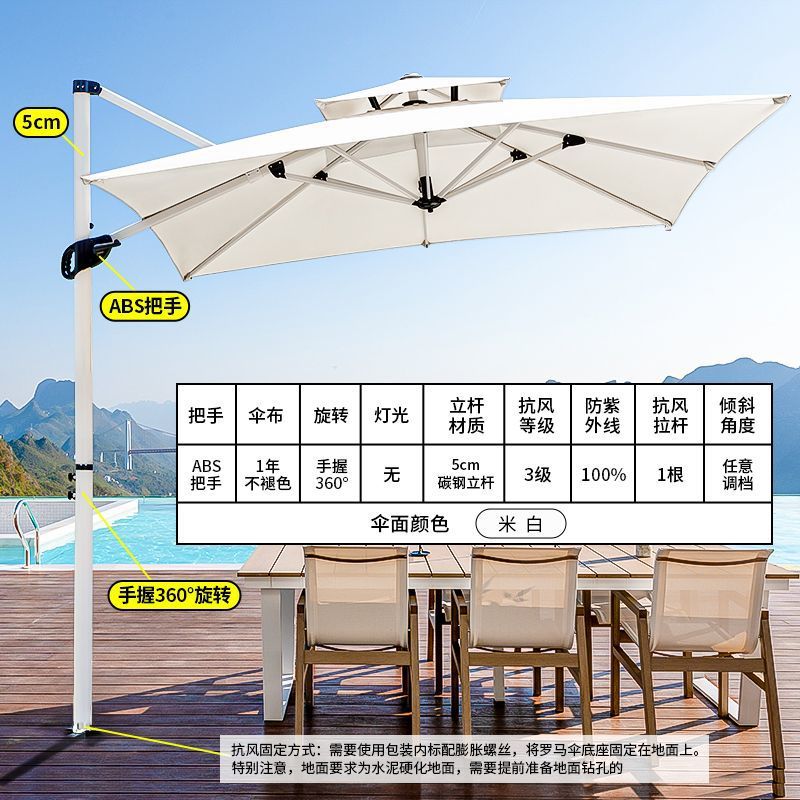 • **강화형 알루미늄 우산대 3m 사각 + 360도 회전 바퀴 받침대**