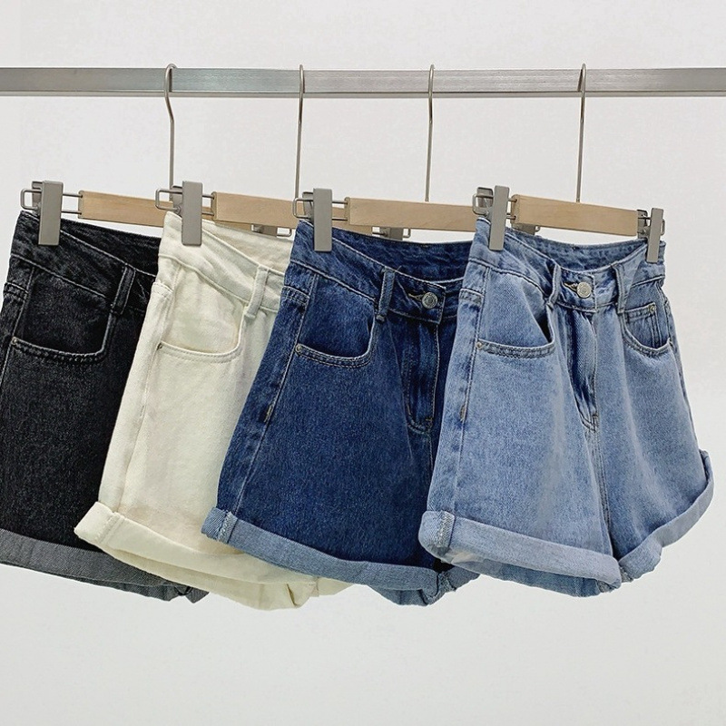 하이웨이스트 루즈핏 데님반바지 루즈하고 슬림한 컬링 데님반바지스토어 가기