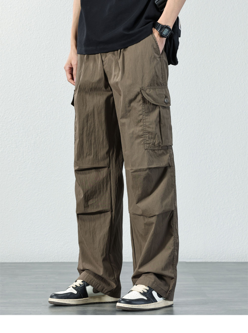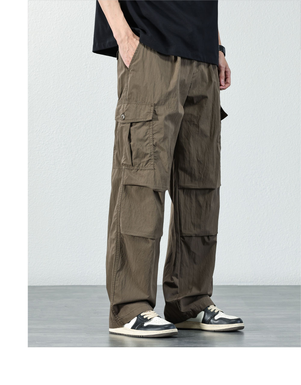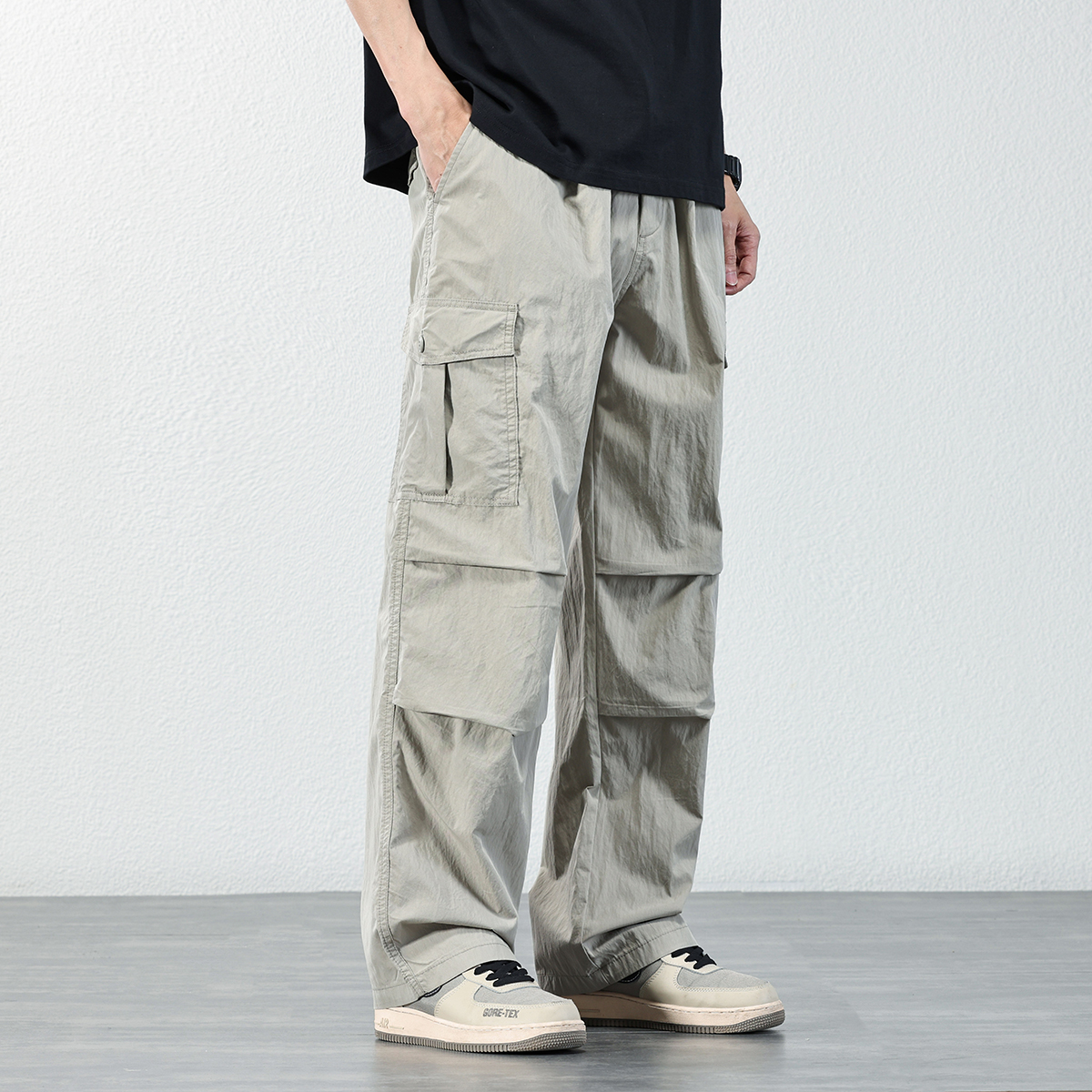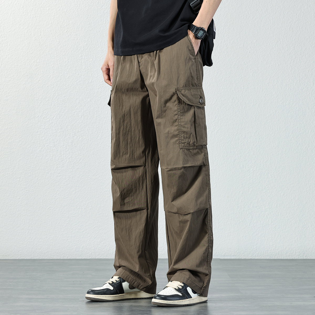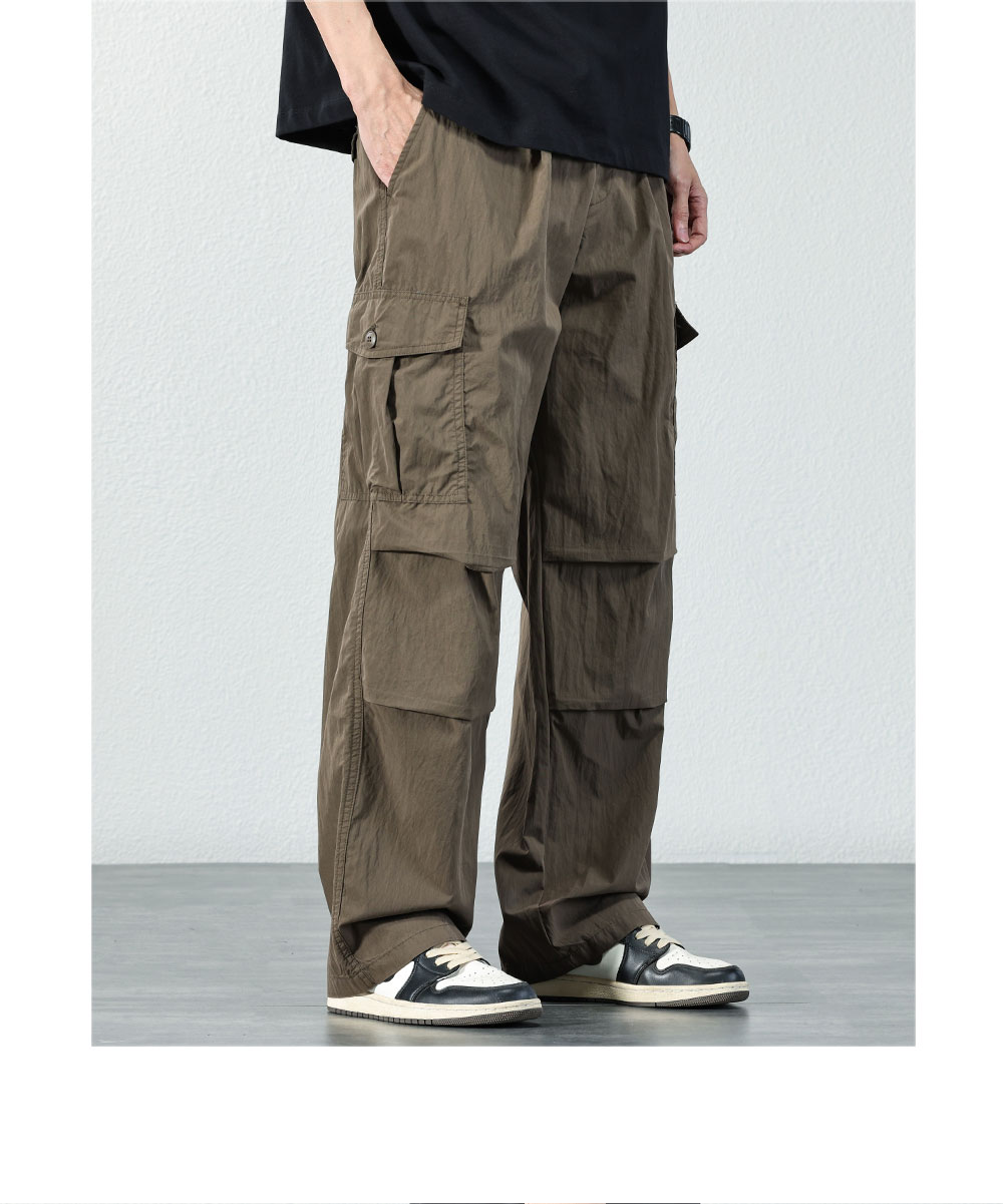 HAOZHI 야외 등산 기능성 작업복 남성 2025 여름 루즈 스트레이트 팬츠 아이스 실크 속건 캐주얼 바지스토어 가기