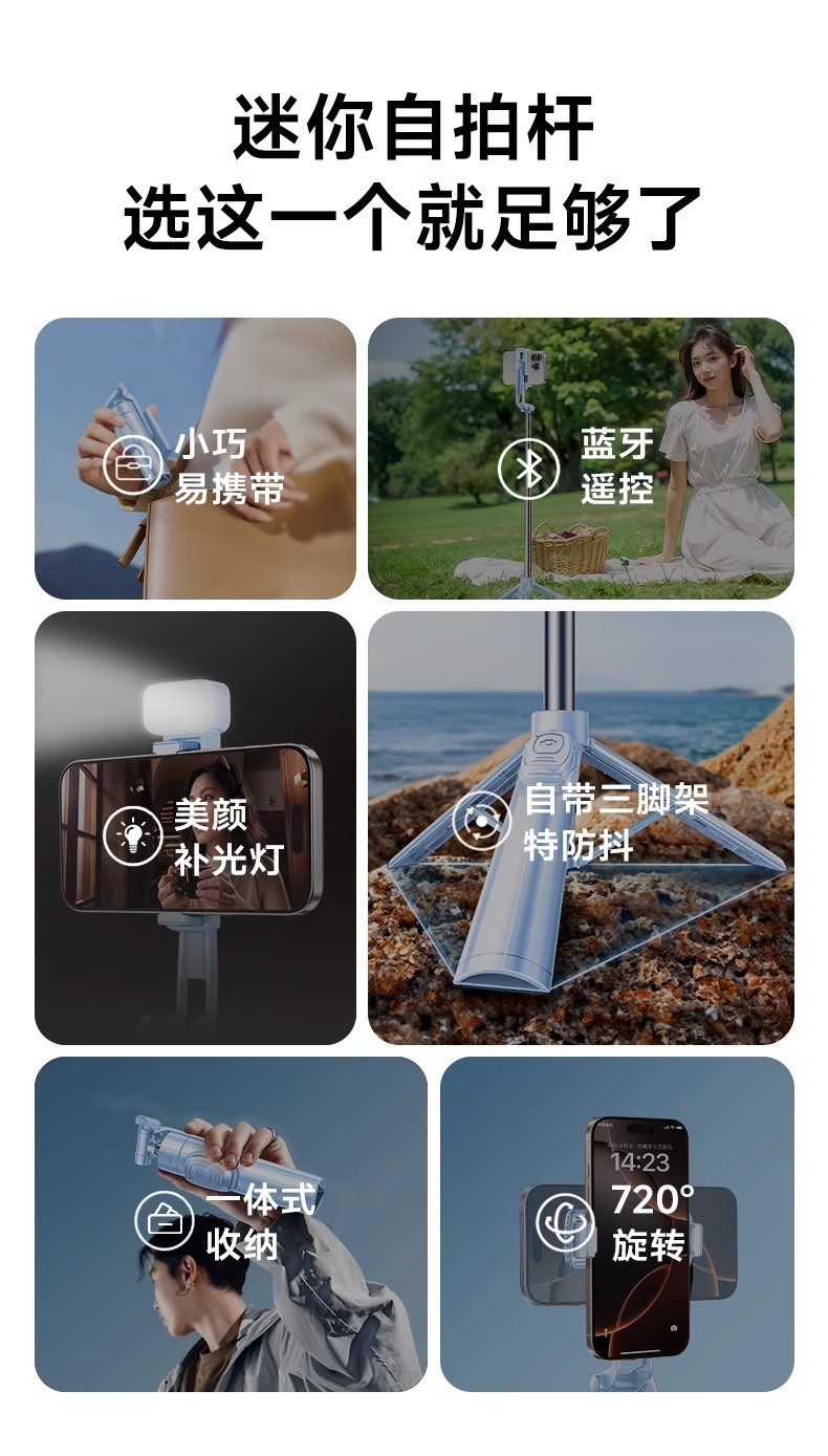 슈퍼 미니 셀카봉, 여행용 휴대용 플로어 스탠딩 삼각대, 회전하는 휴대폰 사진 유물스토어 가기