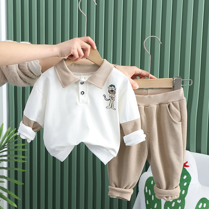 2025년 새로운 스타일의 아기 소년, 패셔너블하고 잘 생긴 어린이 가슴 원숭이 긴팔 투피스 가을 의류 아동복스토어 가기