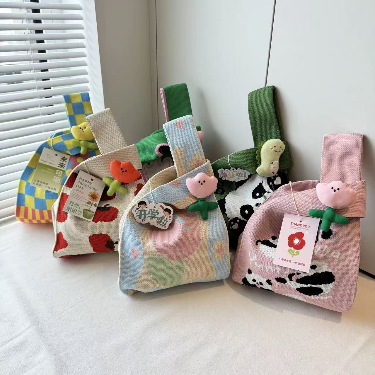 일본과 한국의 다용도 학생 쇼핑 핸드백 대용량 소녀 고급 핸드백 패션 니트 가방 도매
