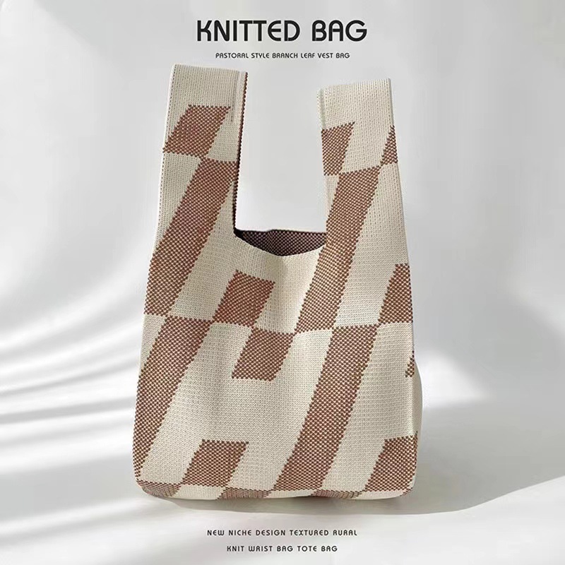 일본과 한국의 다용도 학생 쇼핑 핸드백 대용량 소녀 고급 핸드백 패션 니트 가방 도매스토어 가기