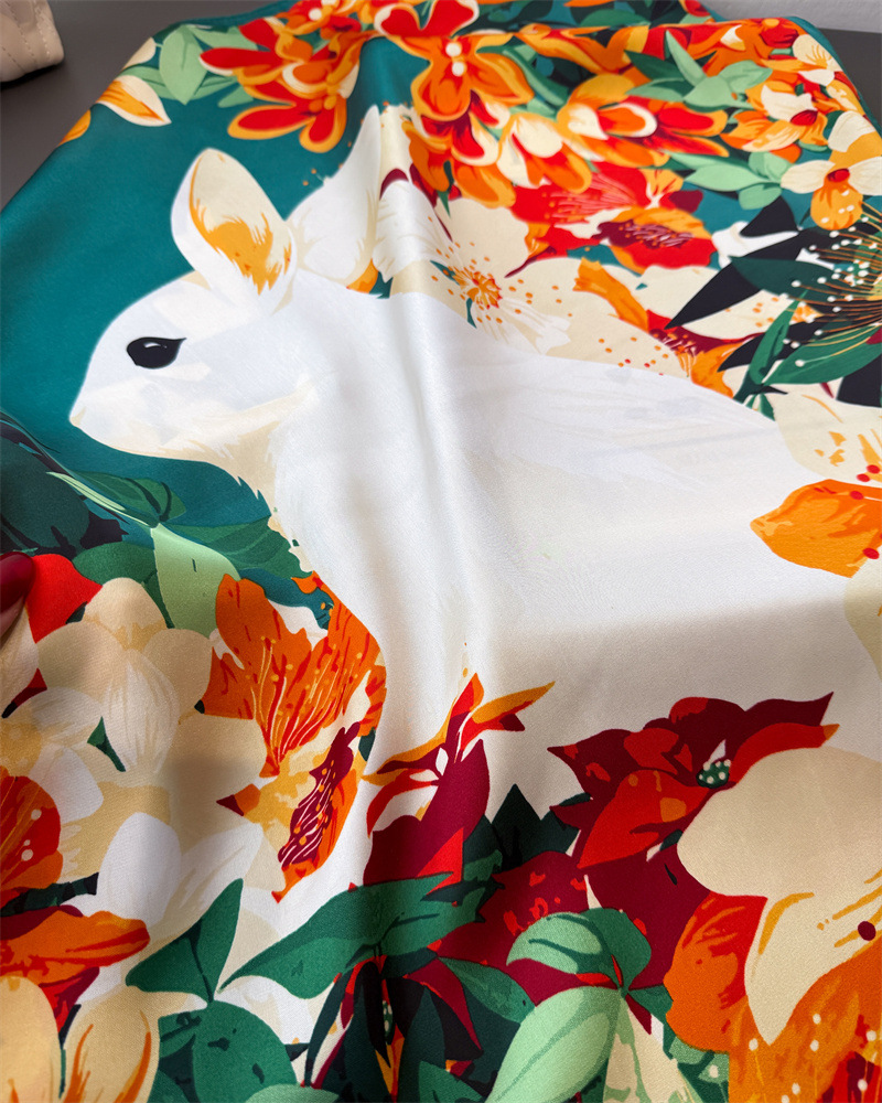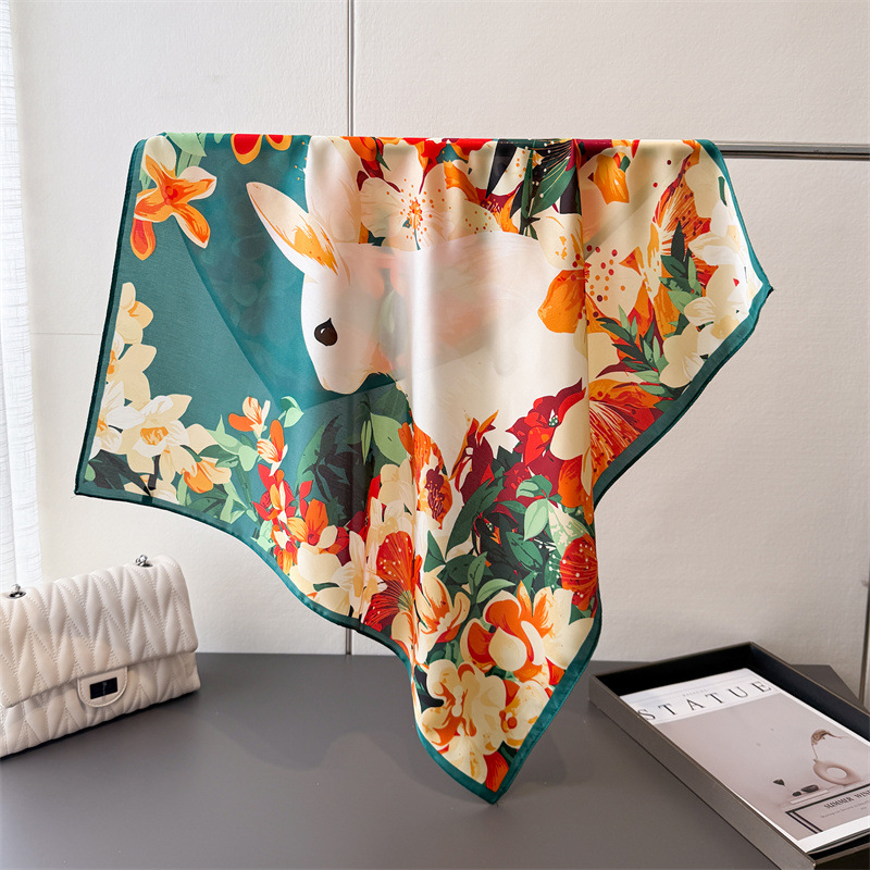 Hualin 흰 토끼 인쇄 시뮬레이션 실크 스카프 사각형 스카프 하이 엔드 숄 다목적 넥 스카프 스카프 여성용