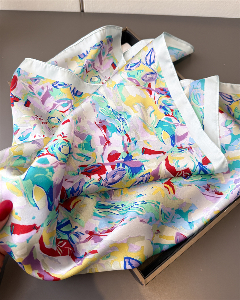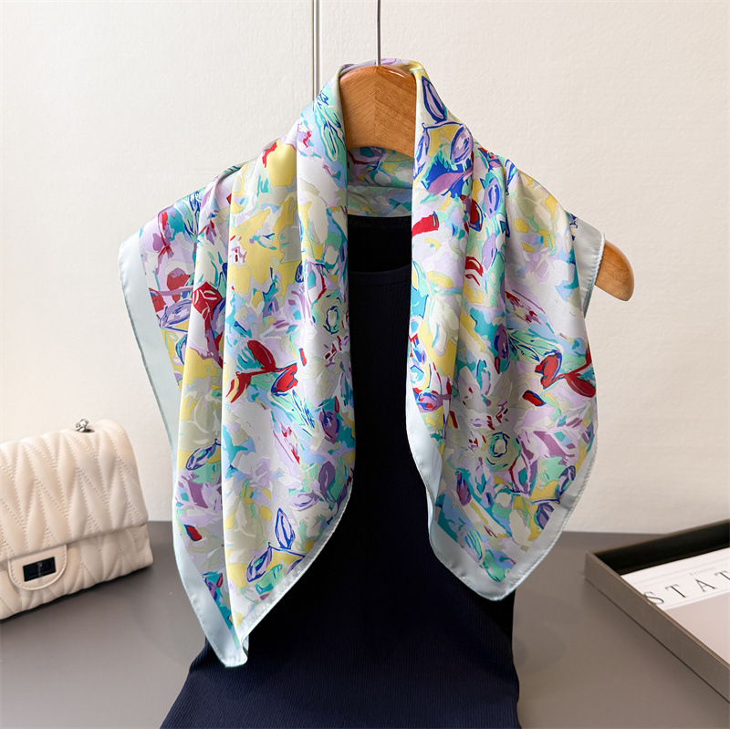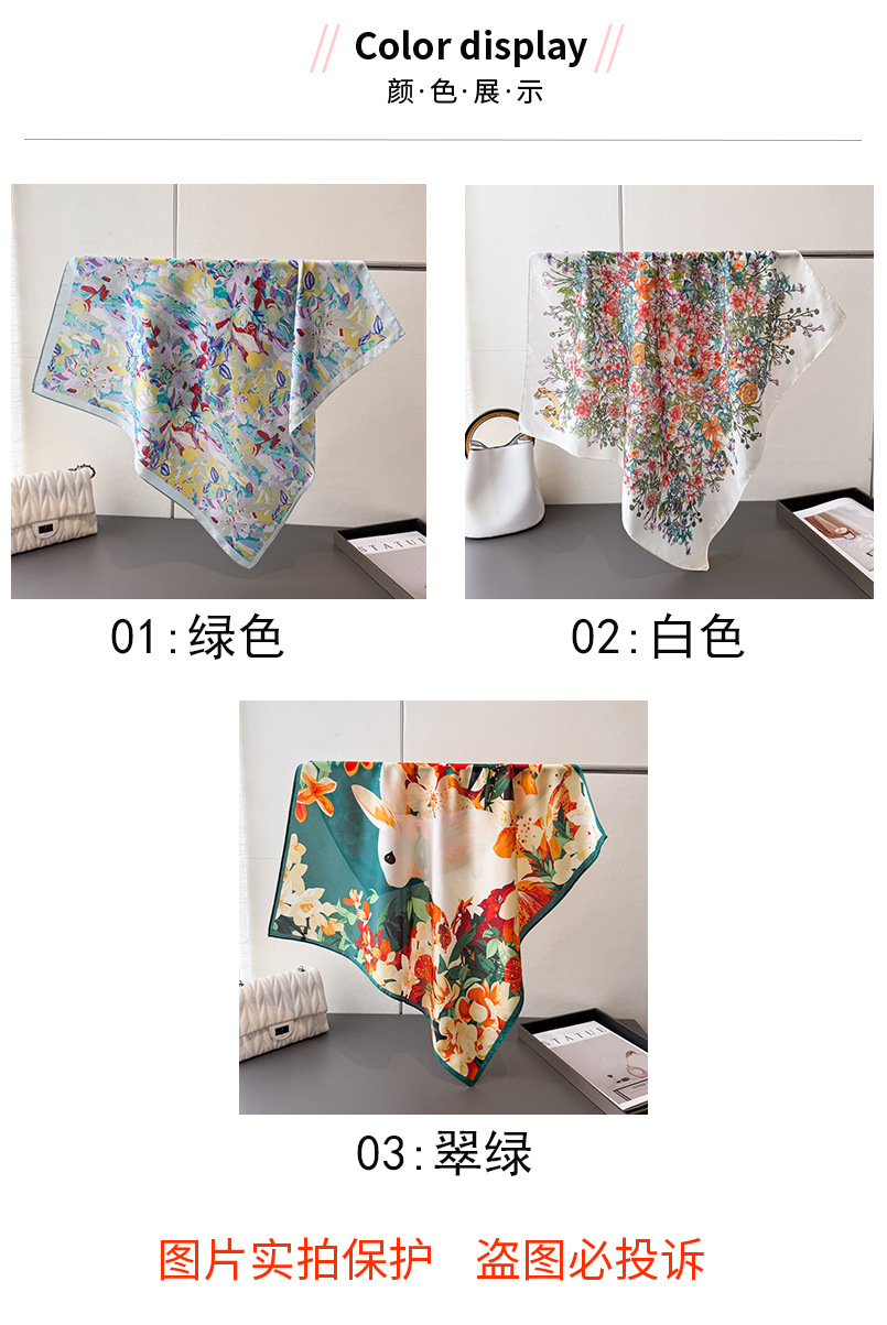 Hualin 흰 토끼 인쇄 시뮬레이션 실크 스카프 사각형 스카프 하이 엔드 숄 다목적 넥 스카프 스카프 여성용스토어 가기