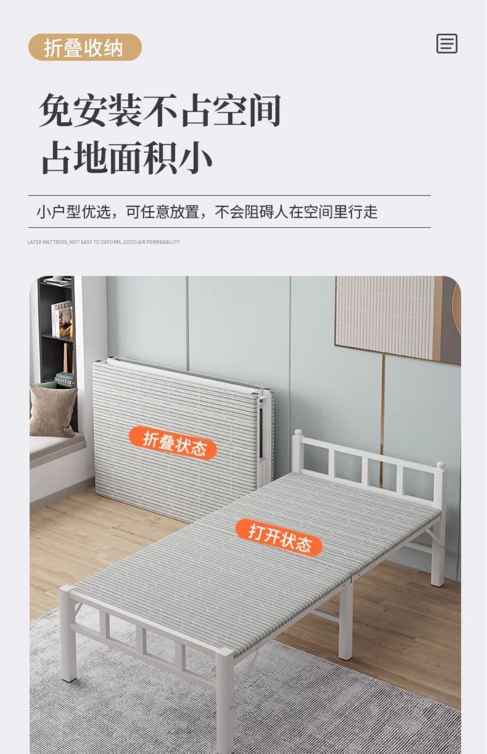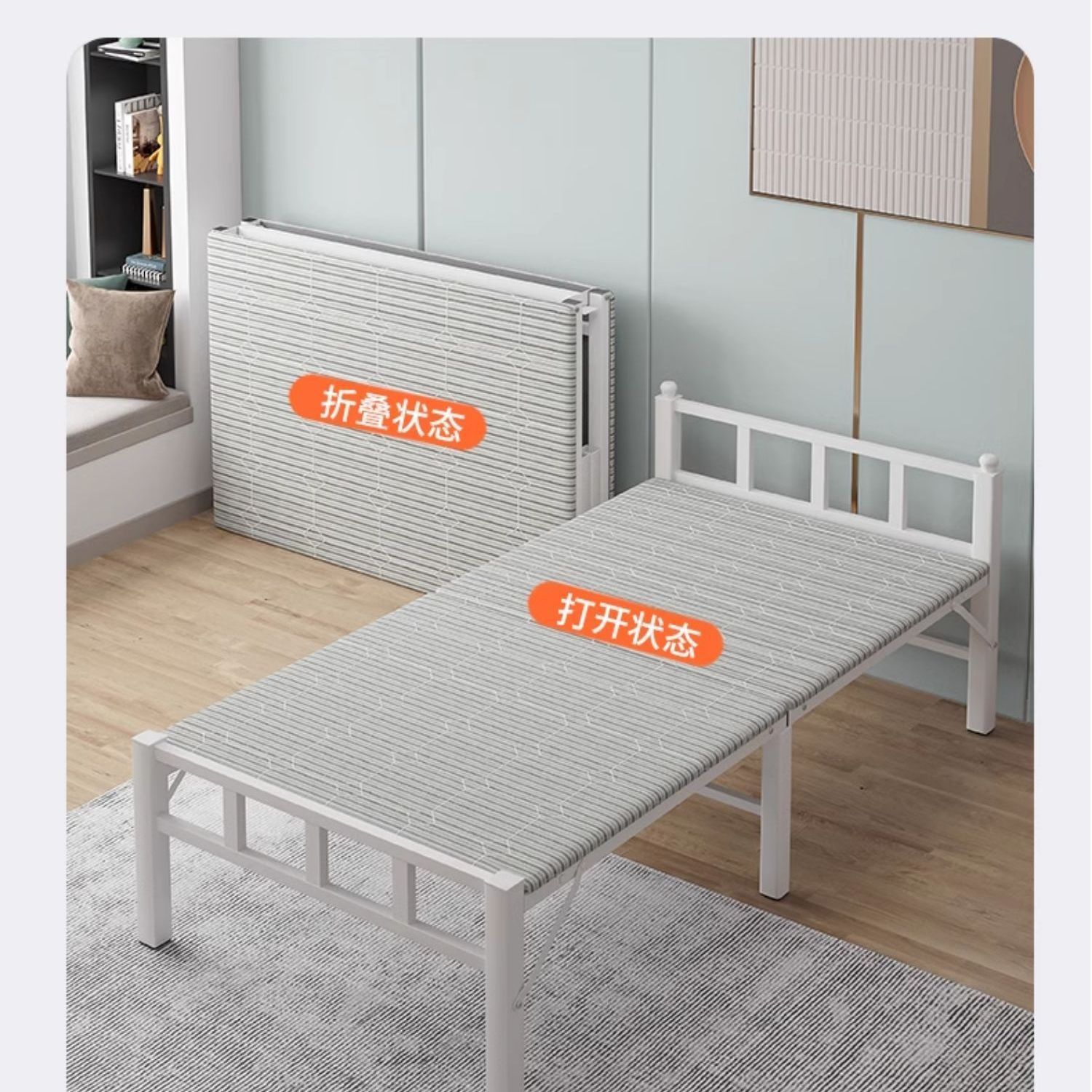 두꺼운 접이식 침대, 휴대용 점심 시간 및 낮잠 유물, 가정용 내구성 싱글 침대, 성인용 휴대용 간단한 동반자 침대스토어 가기