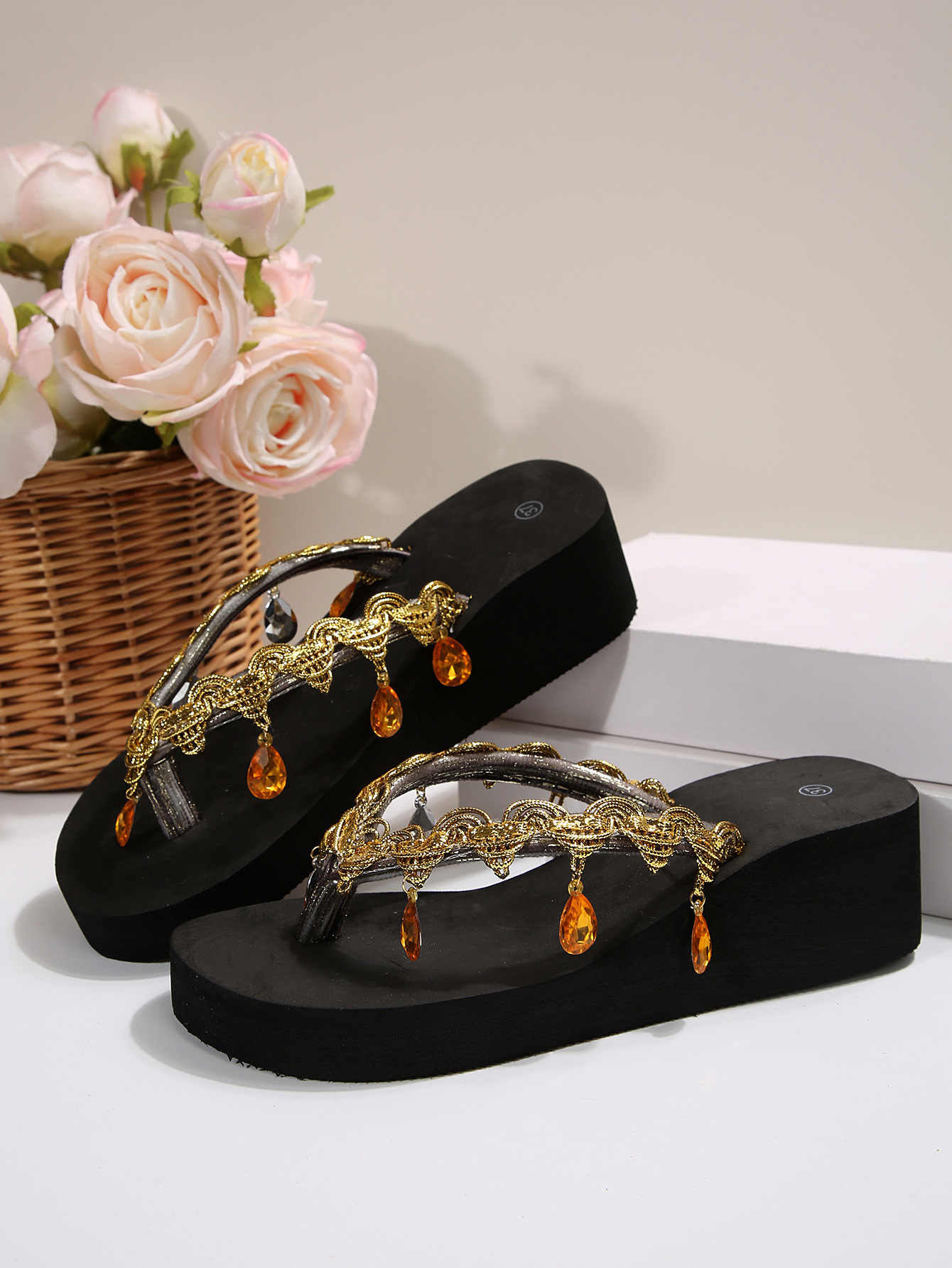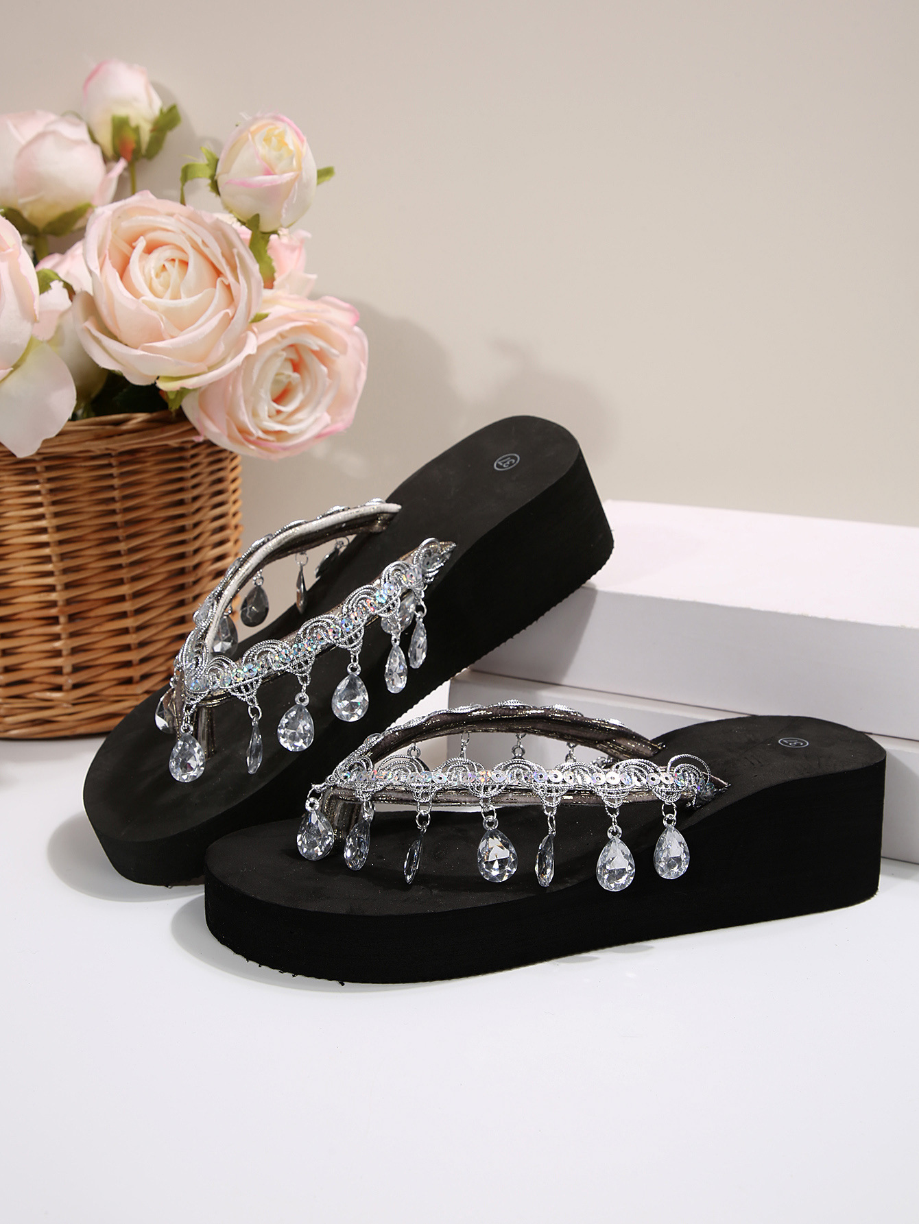 대외 무역 2025 새로운 여름 스타일 플립 플롭 웨지 힐 라인스톤 스팽글 짠 플립 플롭 여성용 도매