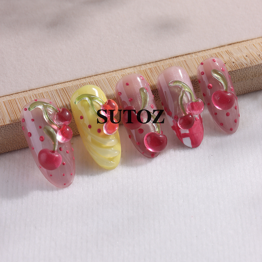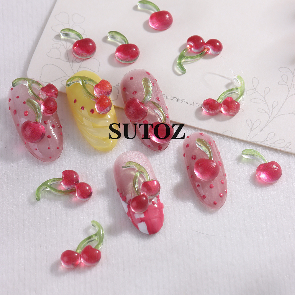 Pingxixi의 새로운 네일 아트 액세서리 여름 신선한 시뮬레이션 귀여운 체리 입체 네일 장식 액세서리스토어 가기
