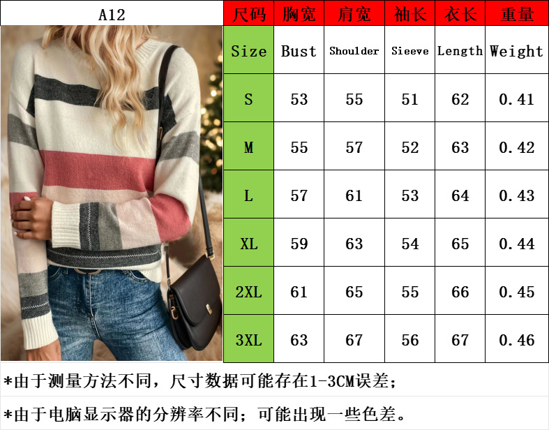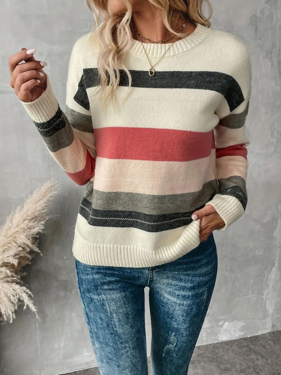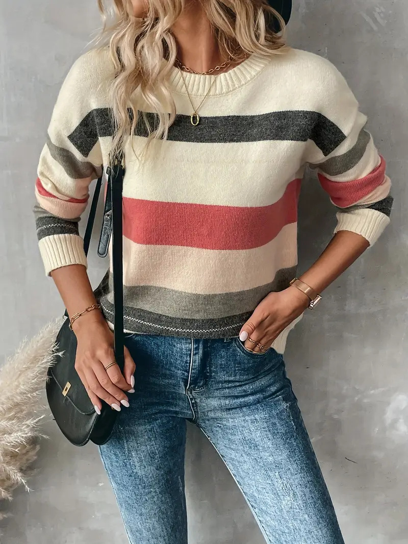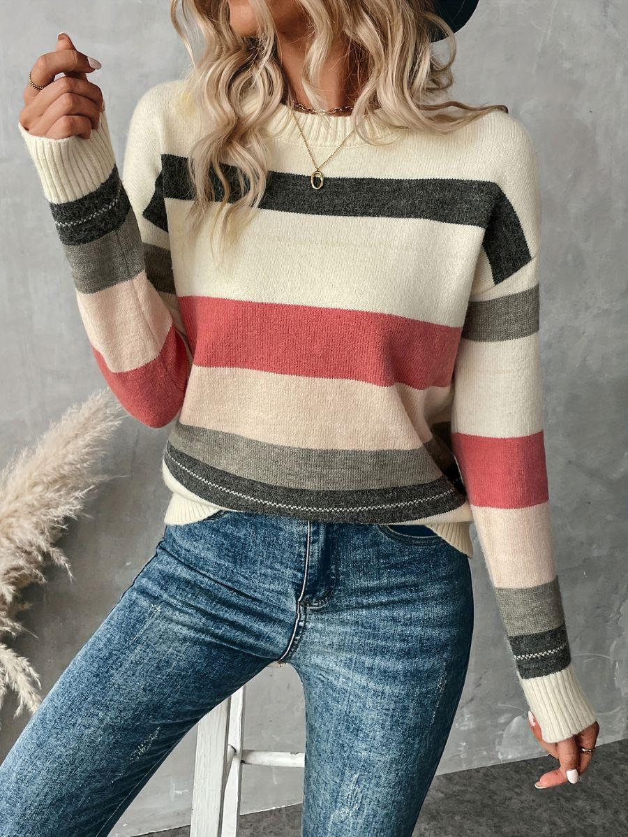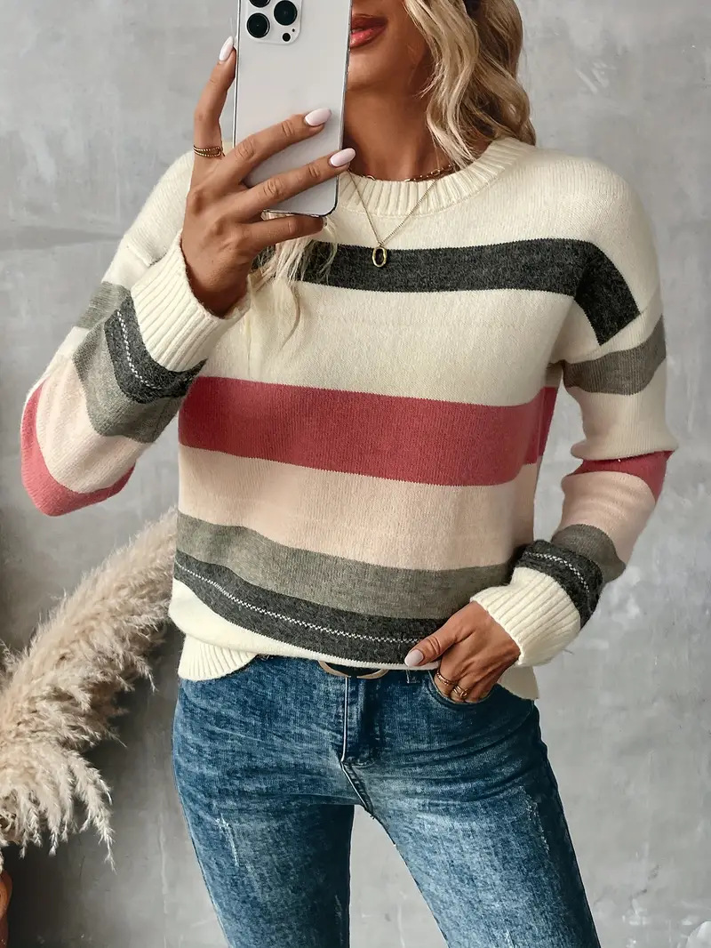 여성용 탑 스트라이프 대비 색상 스플 라이스 스웨터 소녀 가을 느슨한 게으른 스타일 패션 여성용 라운드 넥 스웨터
