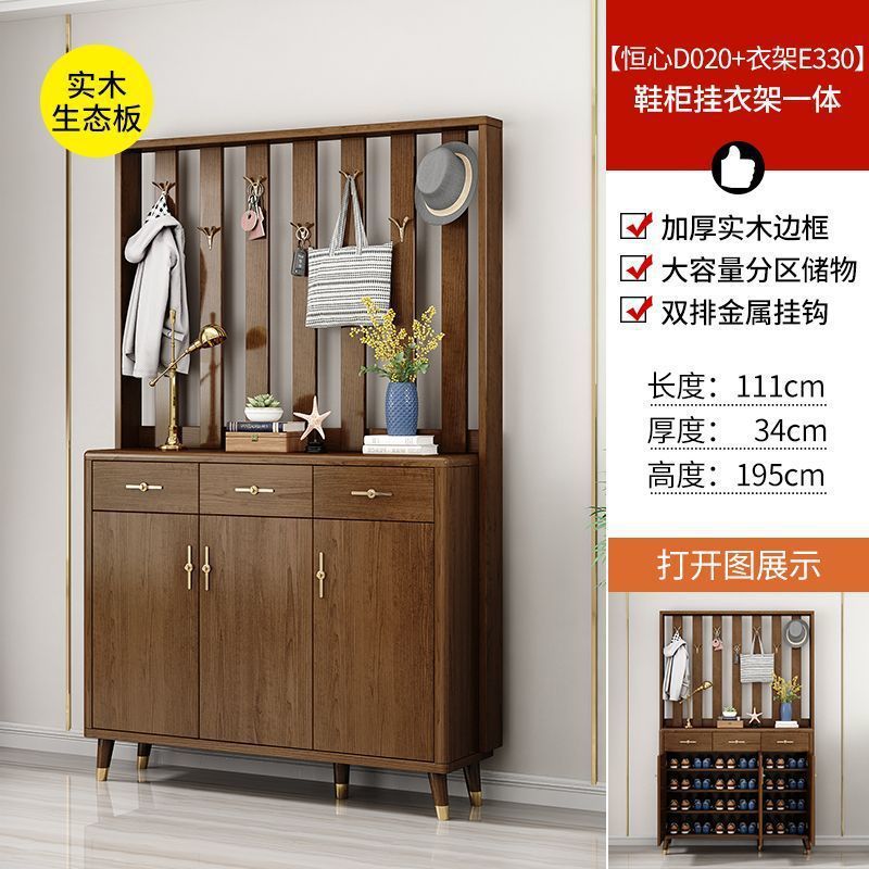 새로운 중국 스타일의 단단한 나무 신발장 옷걸이 일체형 집 문 거실 벽에 대 한 대용량 보관 캐비닛