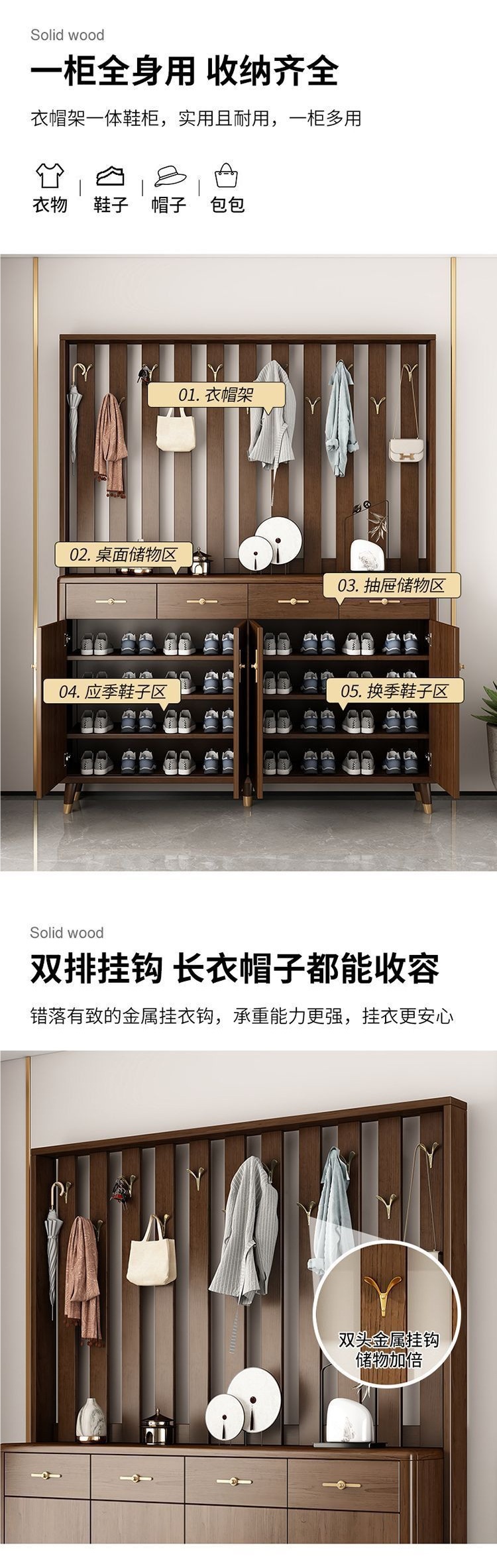 새로운 중국 스타일의 단단한 나무 신발장 옷걸이 일체형 집 문 거실 벽에 대 한 대용량 보관 캐비닛스토어 가기